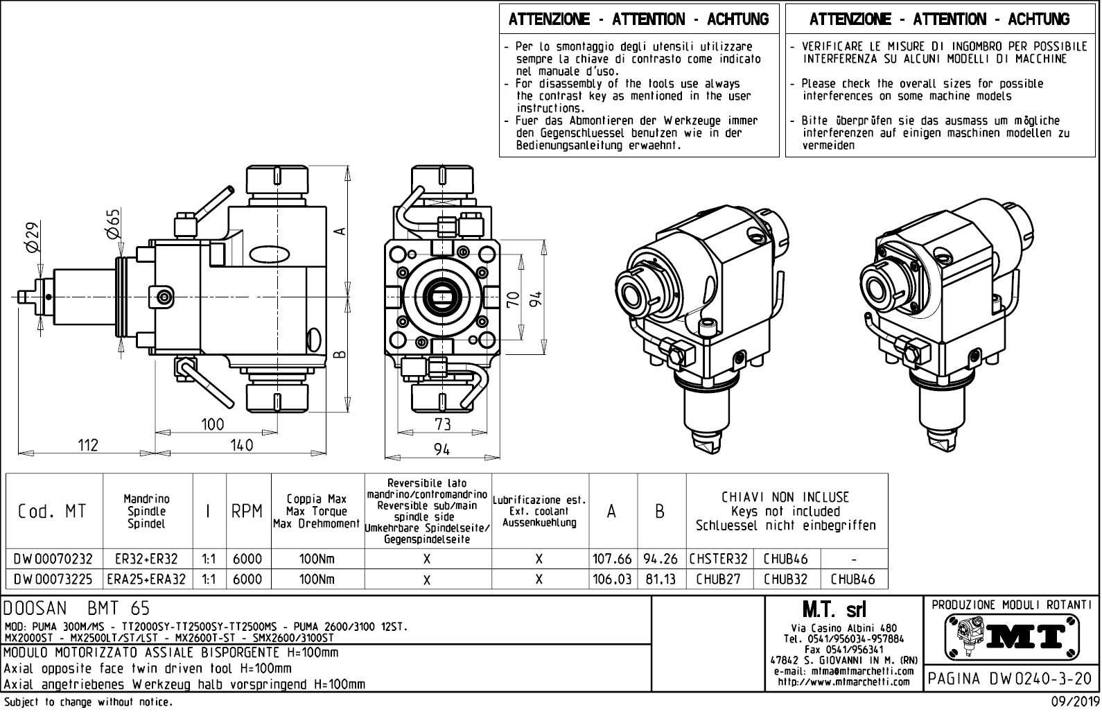 Axiální rotační držák nástrojů pro stroje s nástrojovou hlavou BMT65.