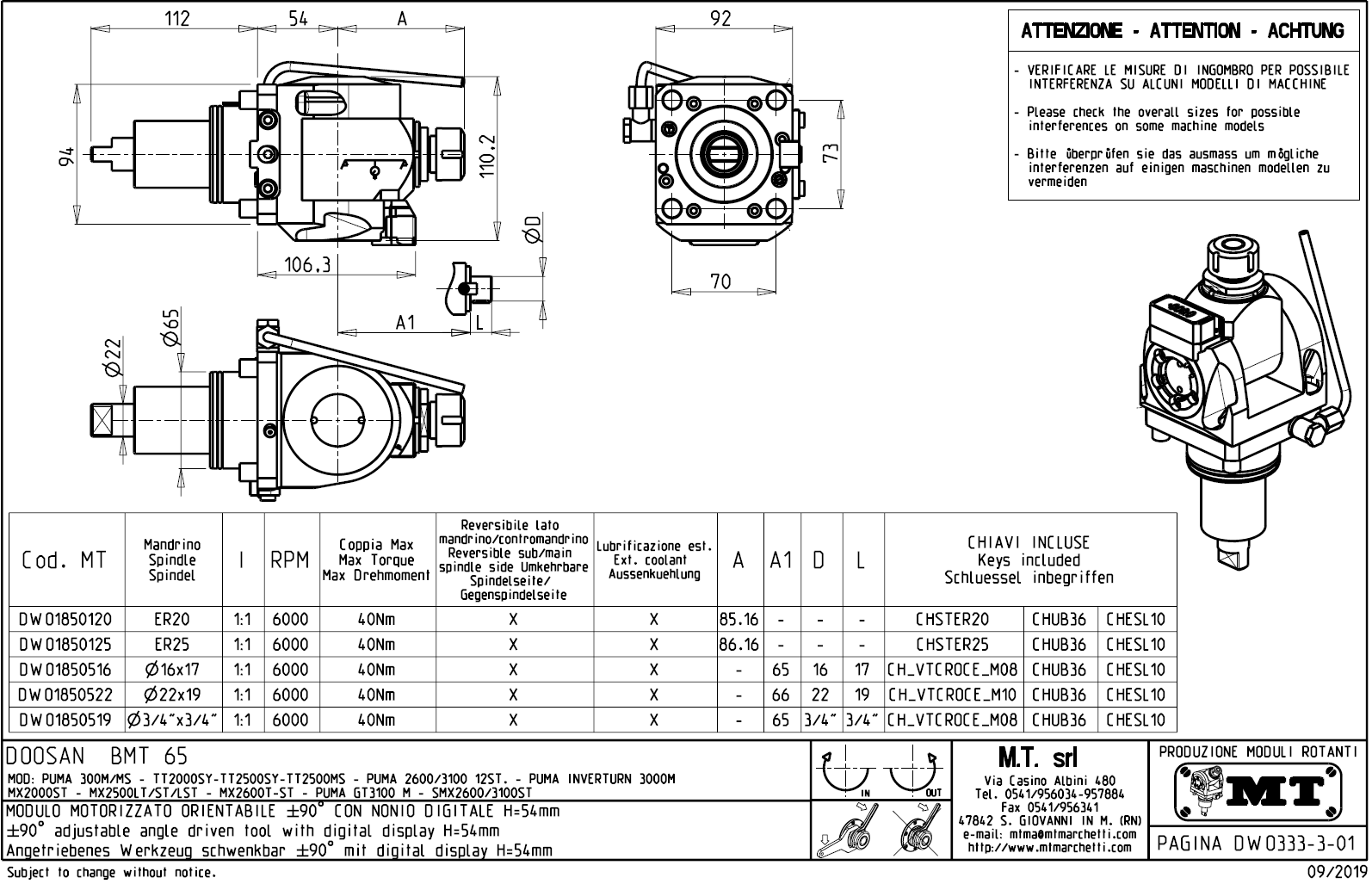 Úhlově nastavitelný rotační držák nástrojů pro stroje s nástrojovou hlavou BMT65.