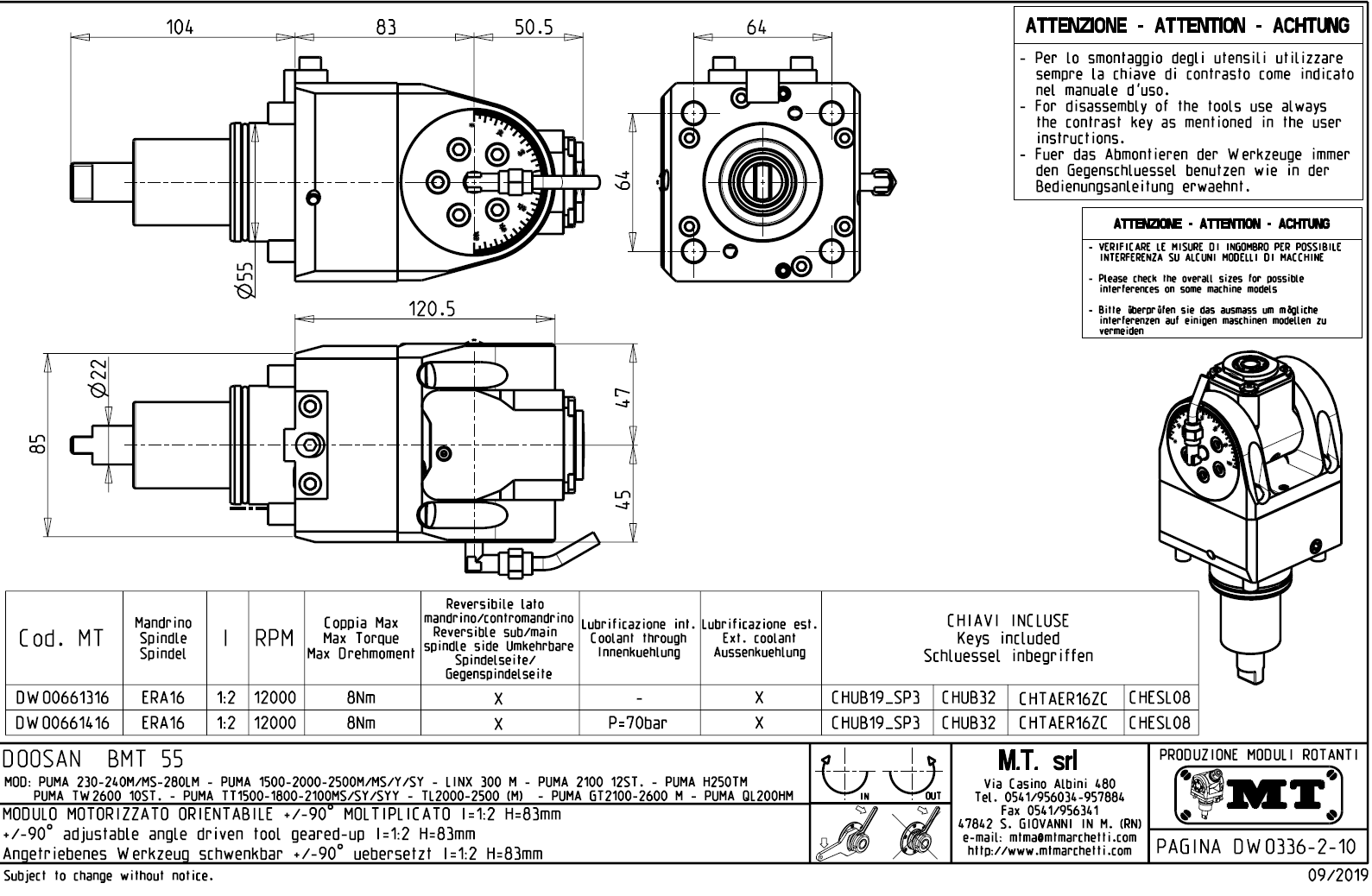 • Hyundai WIA (Kia) - série SKT160TTMS / SKT160TTSY / SKT180TTMS / SKT180TTSY