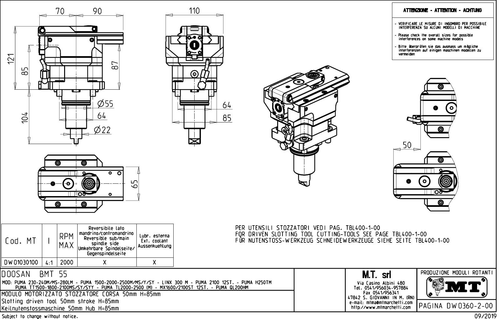 - Hyundai WIA (Kia) - série SKT160TTMS / SKT160TTSY / SKT180TTMS / SKT180TTSY