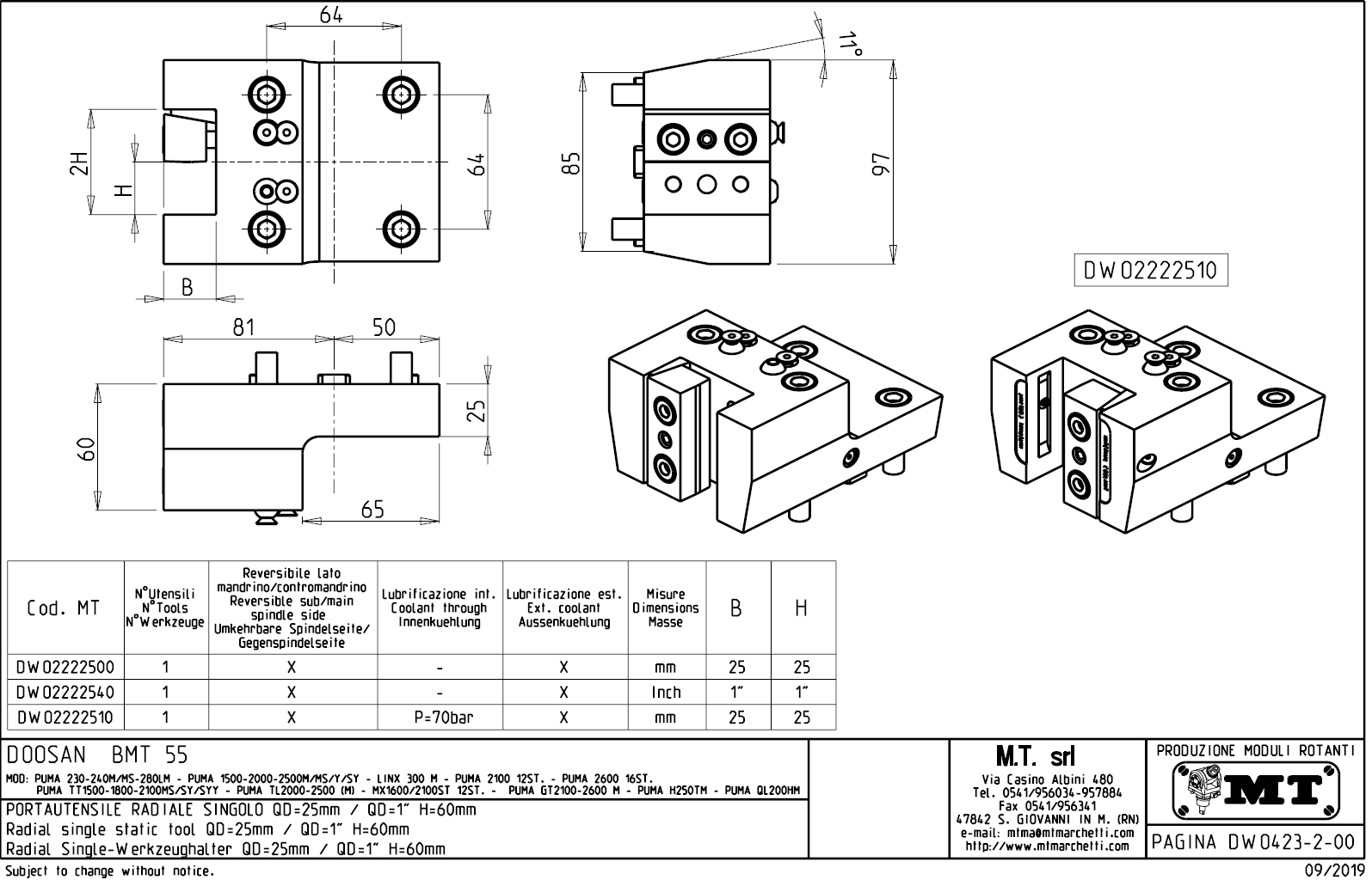 - Hyundai WIA (Kia) - série SKT160TTMS / SKT160TTSY / SKT180TTMS / SKT180TTSY