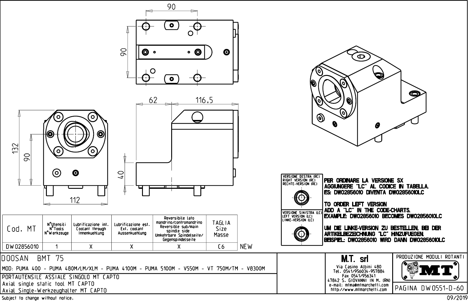 - Doosan - série PUMA V400M / VT450 M / TM