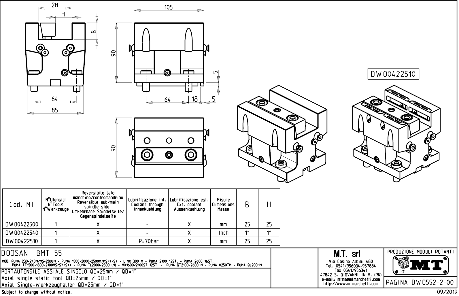 - Hyundai WIA (Kia) - série SKT160TTMS / SKT160TTSY / SKT180TTMS / SKT180TTSY
