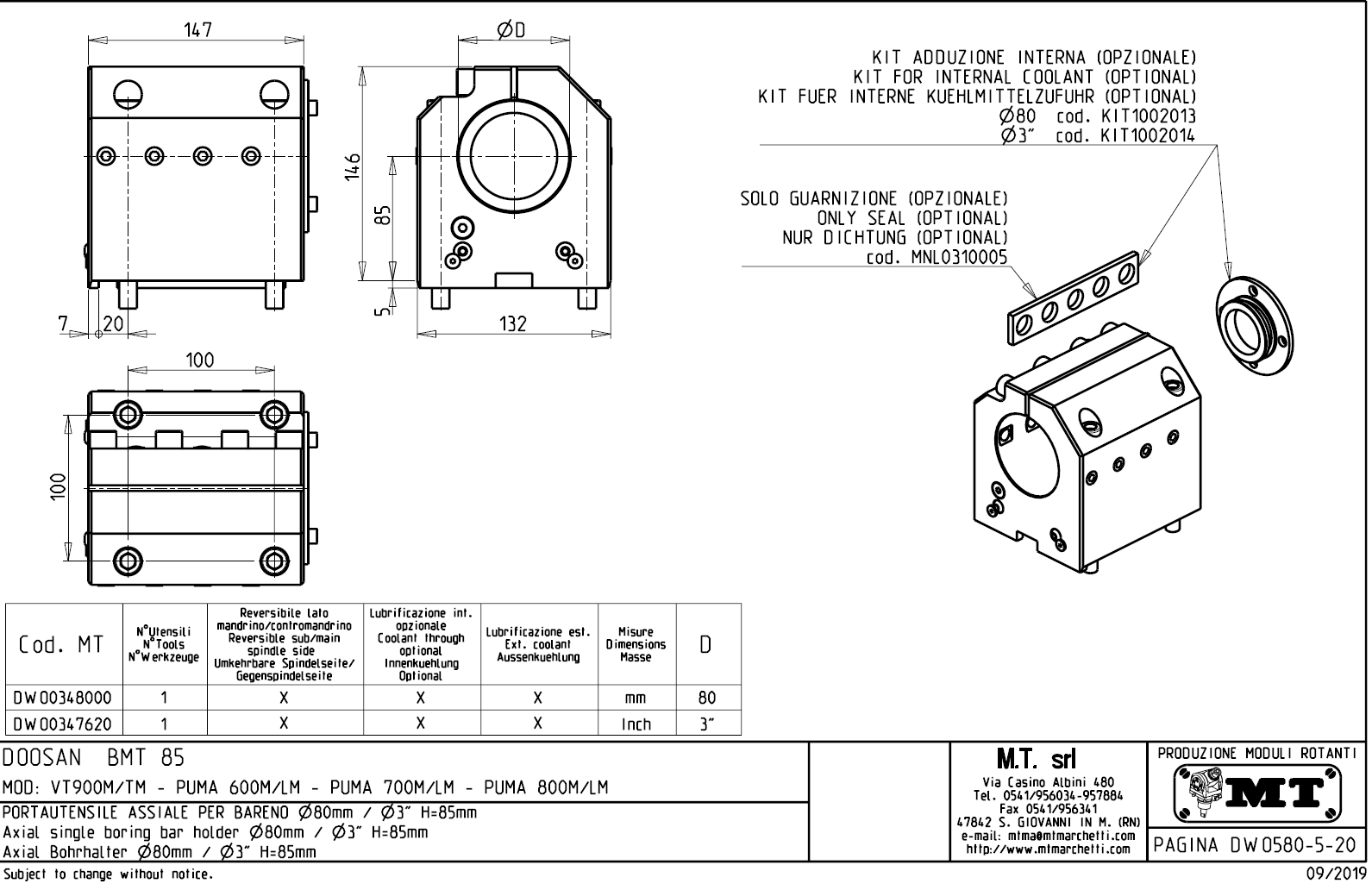 • pro použití vnitřního přívodu chladící kapaliny musí být použit zaslepovací kit, který není součástí standadní dodávky.
