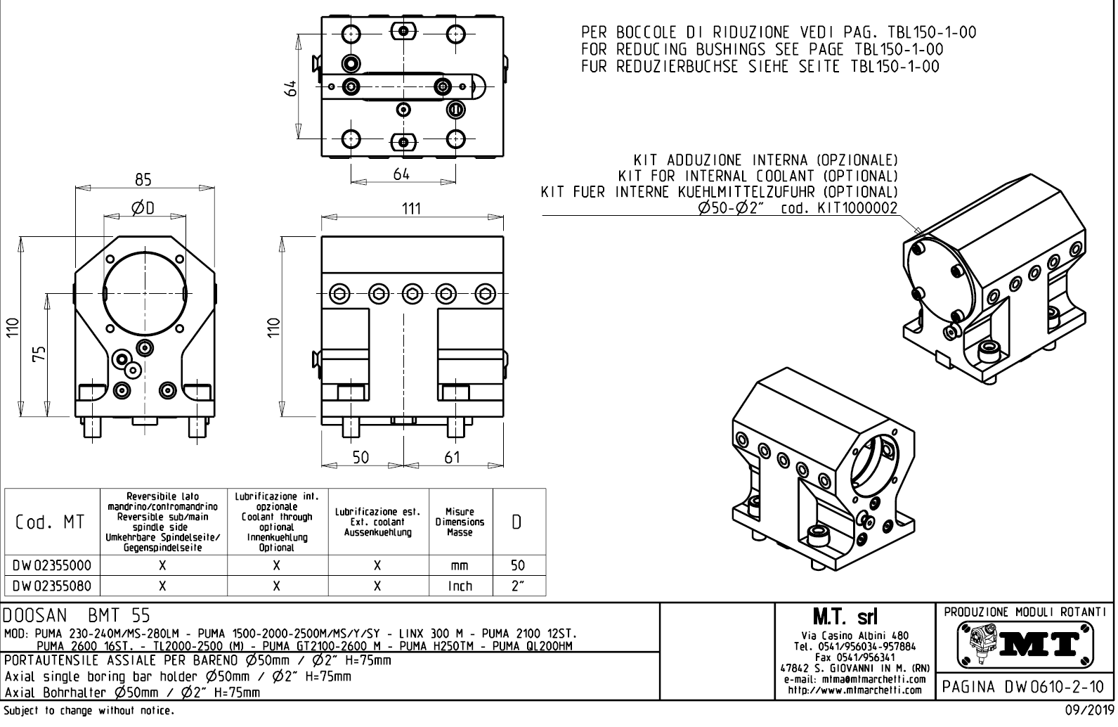 - Hyundai WIA (Kia) - série SKT160TTMS / SKT160TTSY / SKT180TTMS / SKT180TTSY
