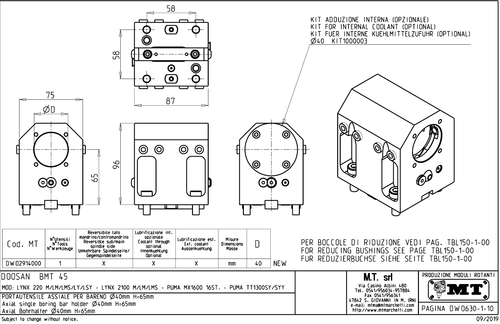 Axiální, pevný (statický) nástrojový držák pro stroje s nástrojovou hlavou typu BMT45.