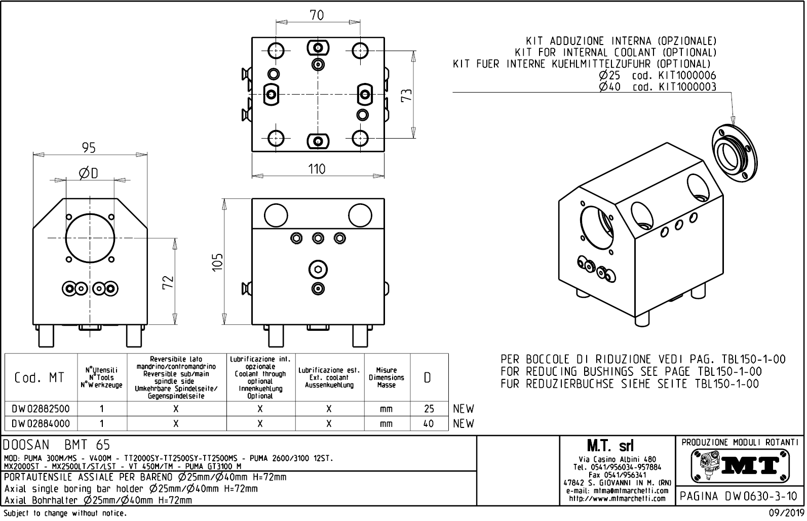 Axiální, pevný (statický) nástrojový držák pro stroje s nástrojovou hlavou typu BMT65.