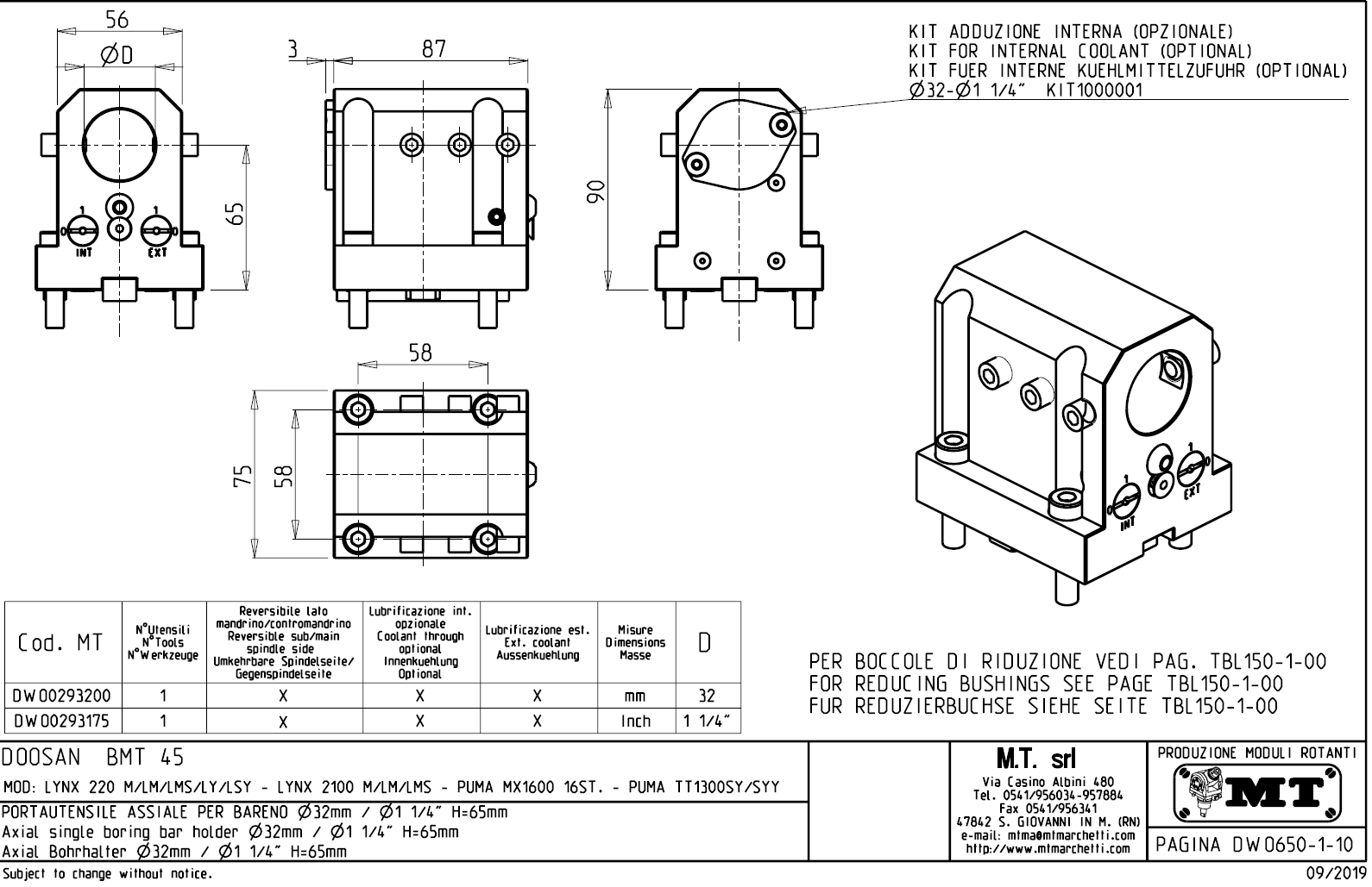 - vnitřní (max.70bar) a venkovní přívod řezné kapaliny.