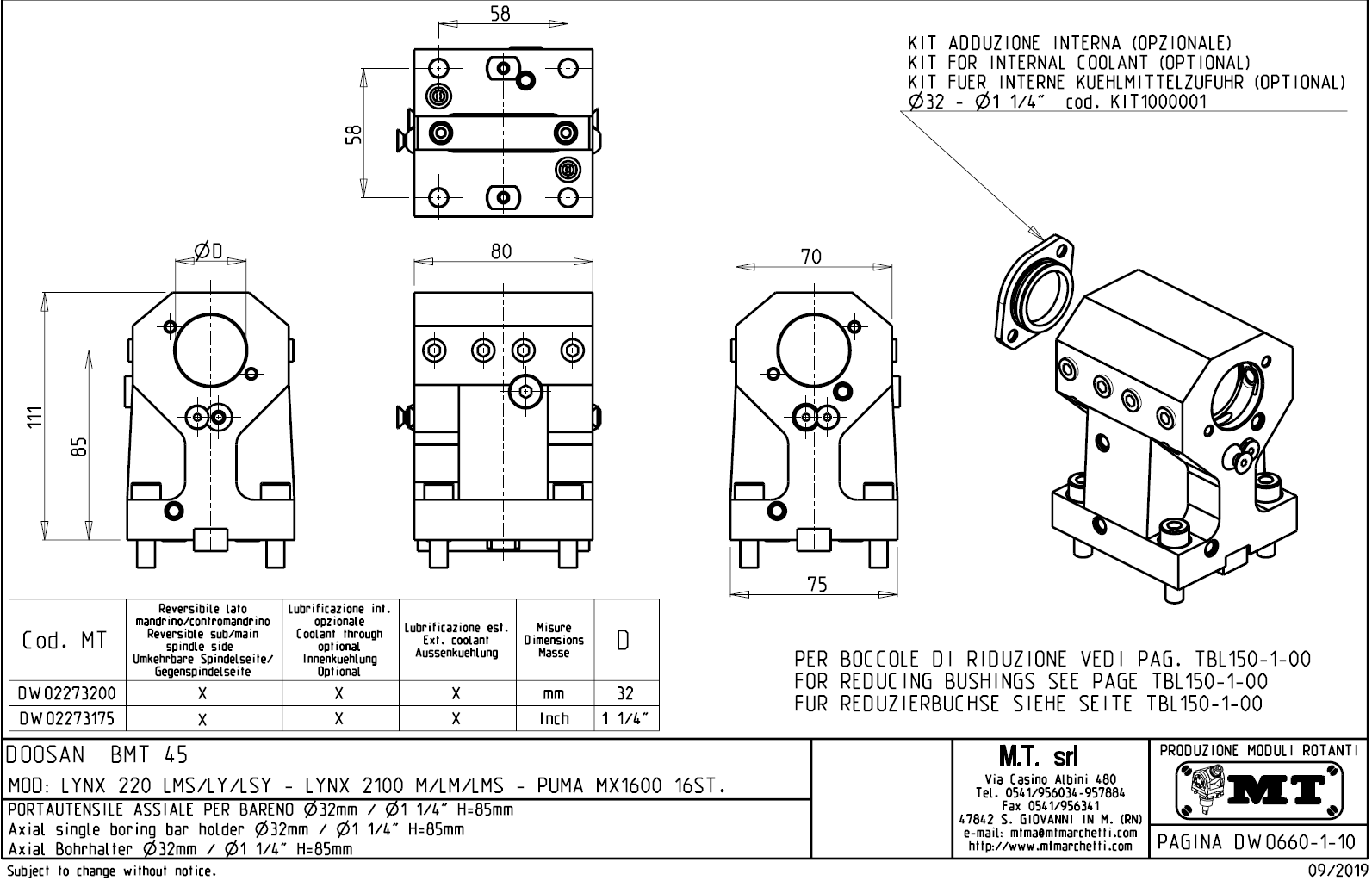 - pro použití vnitřního přívodu chladící kapaliny musí být použit zaslepovací kit, který není součástí standadní dodávky.