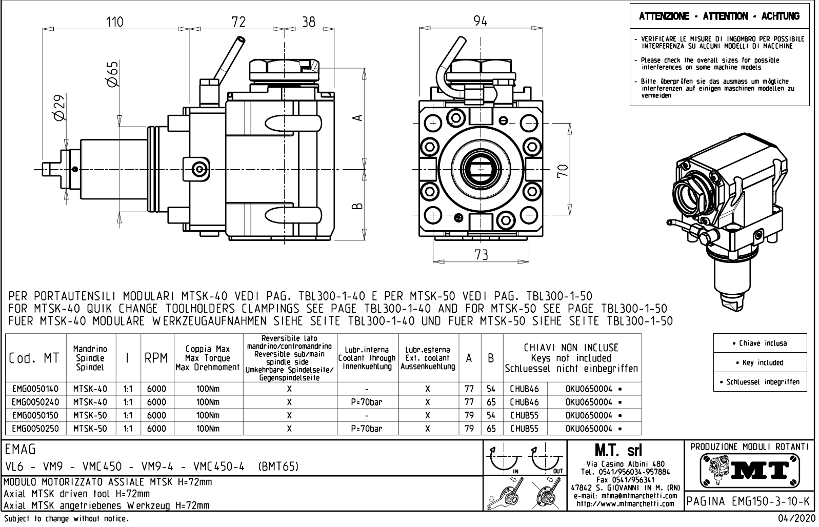 - upnutí nástroje pomocí: rychlovýměnného modulárního systému MTSK.