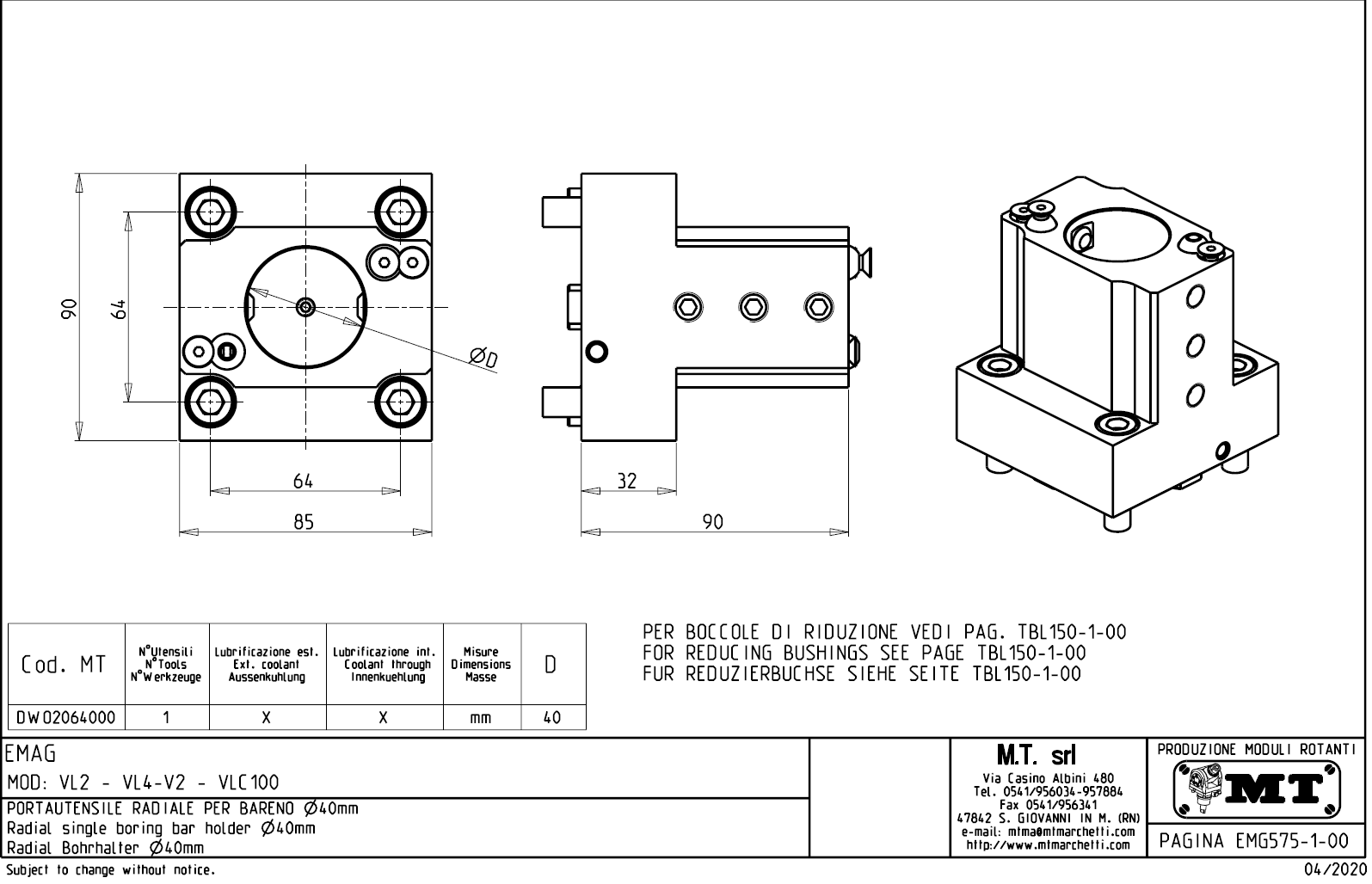 - pro použití vnitřního přívodu chladící kapaliny musí být použit zaslepovací kit, který není součástí standadní dodávky.