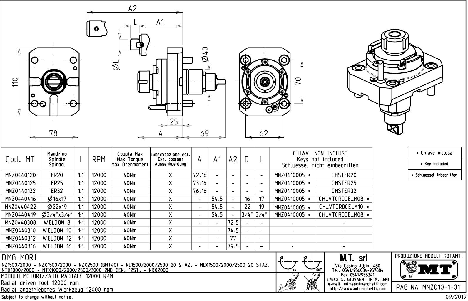 - upnutí nástroje pomocí: kleštiny ER / ERA, nástrčného trnu nebo weldonu.