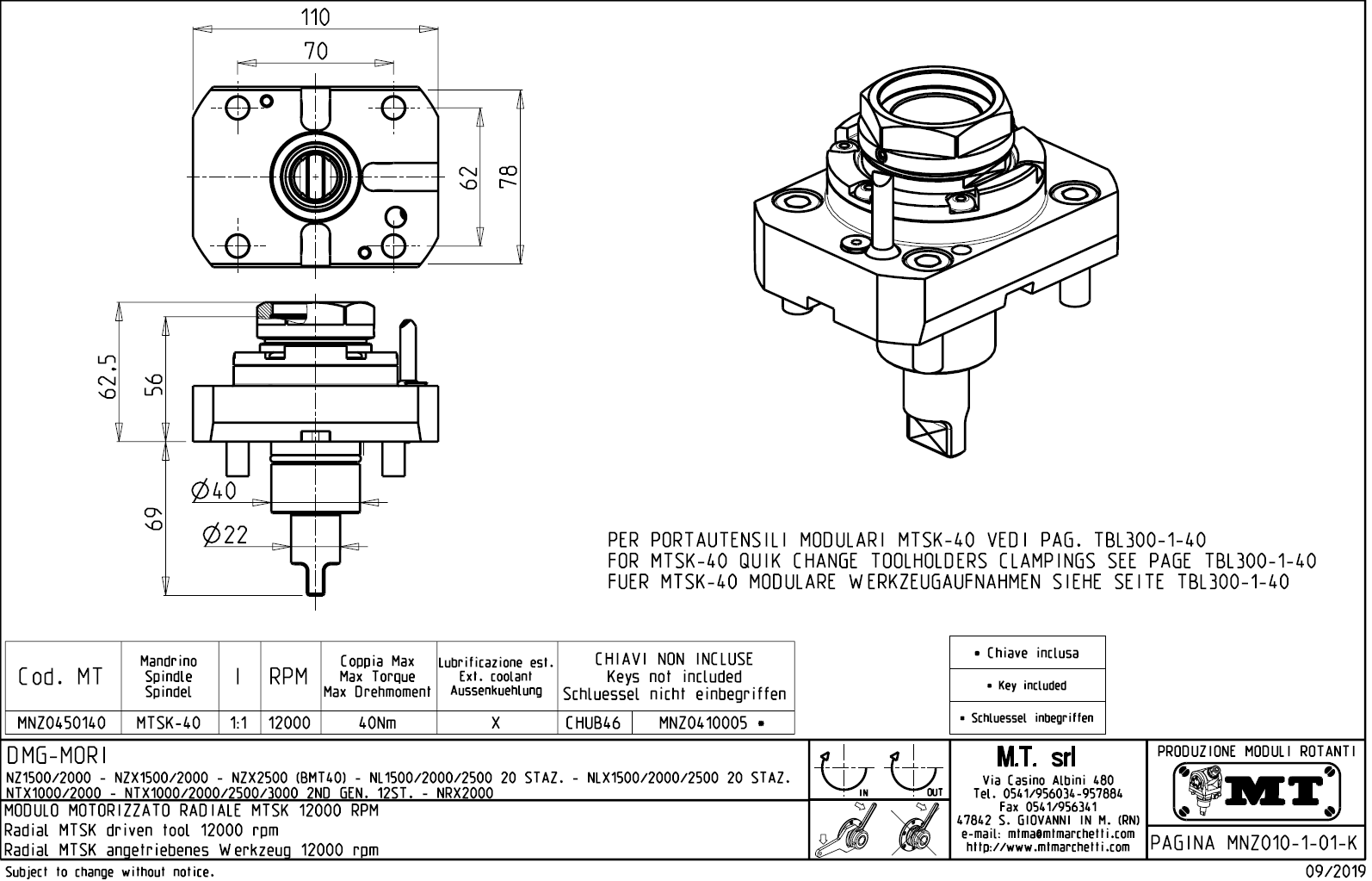 - upnutí nástroje pomocí: rychlovýměnného modulárního systému MTSK.