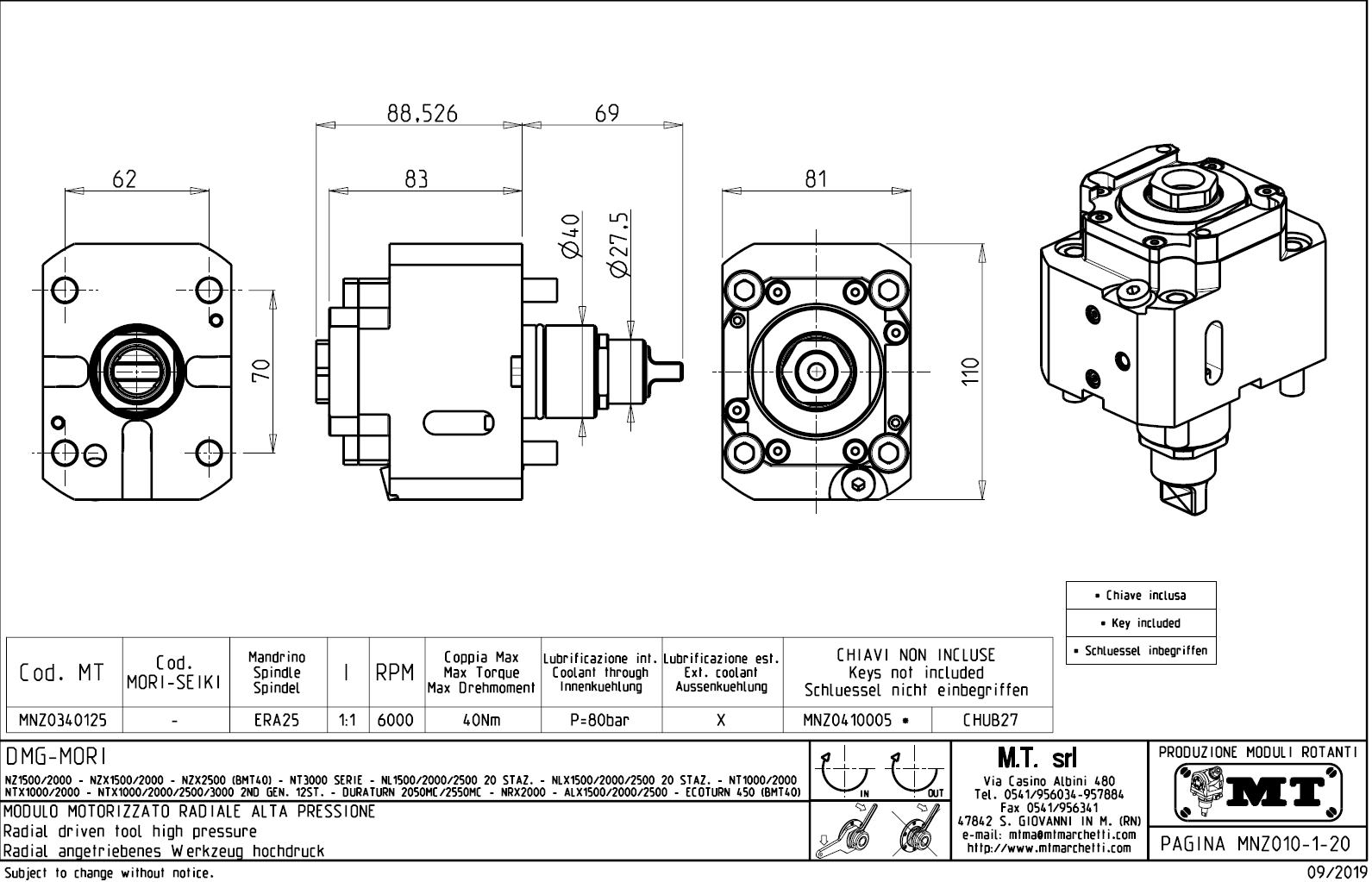 - vnitřní (max.80bar) a venkovní přívod řezné kapaliny.