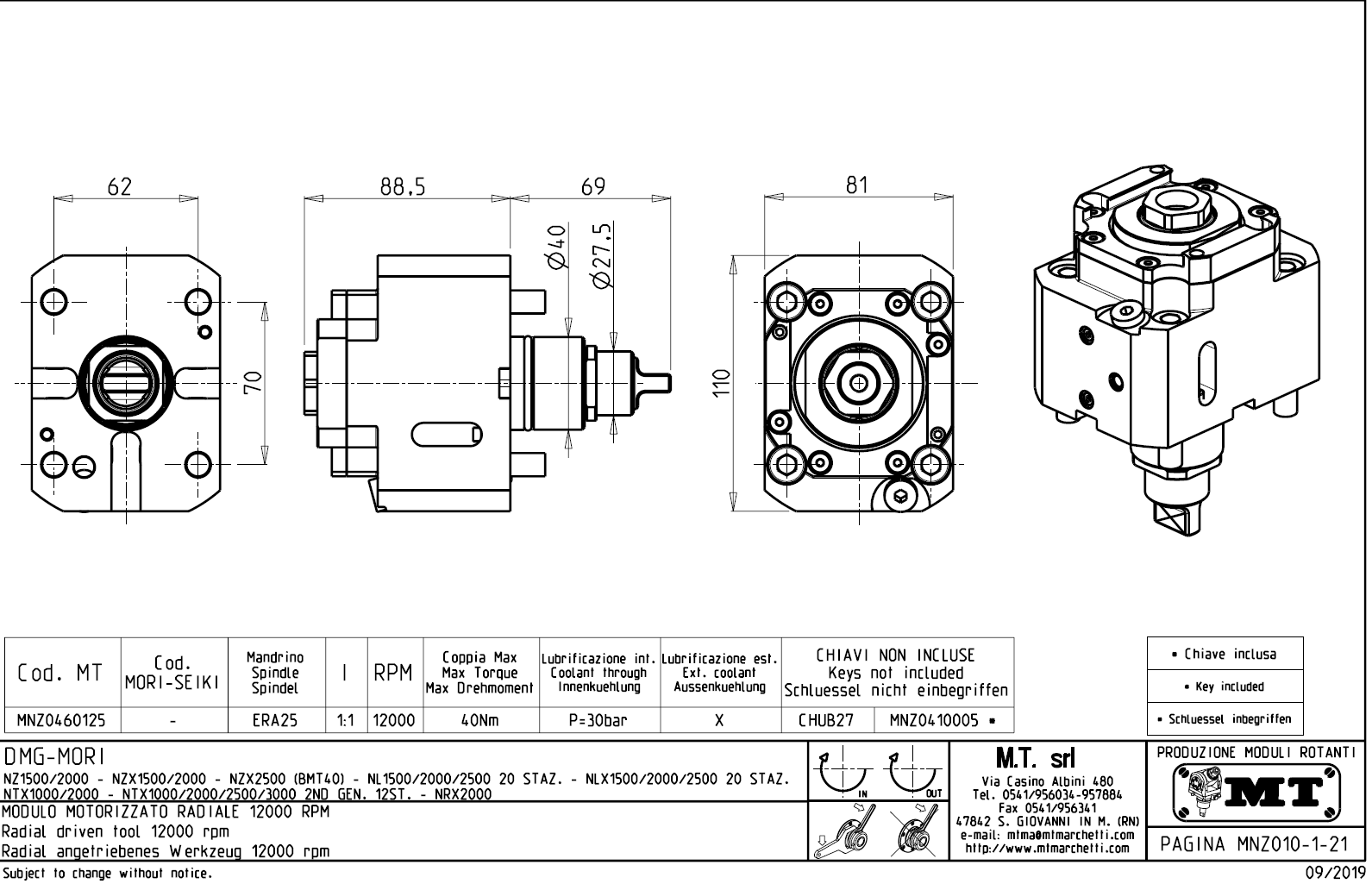 - vnitřní (max.30bar) a venkovní přívod řezné kapaliny.