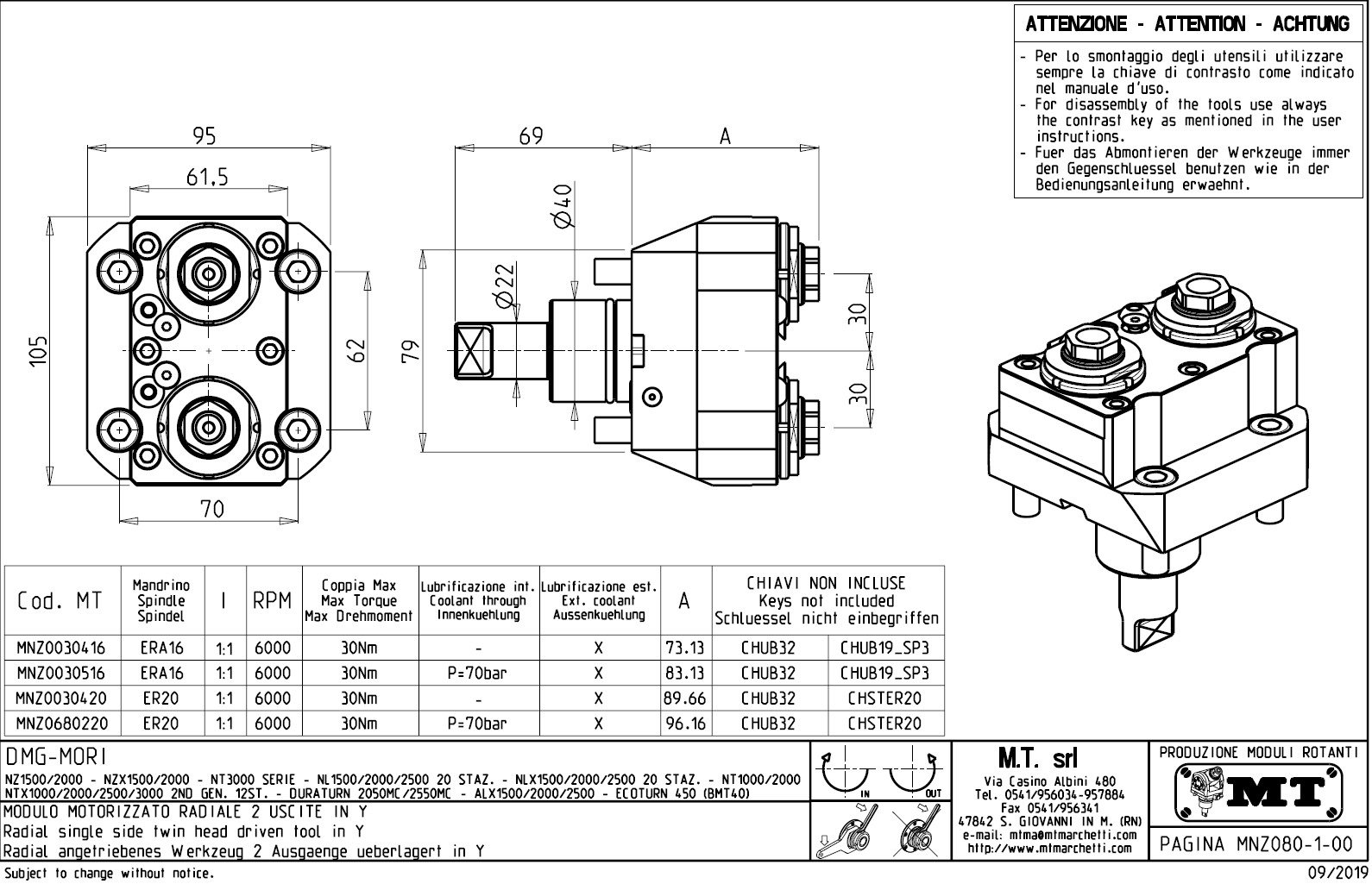 - vnitřní (max.70bar) a venkovní přívod řezné kapaliny.