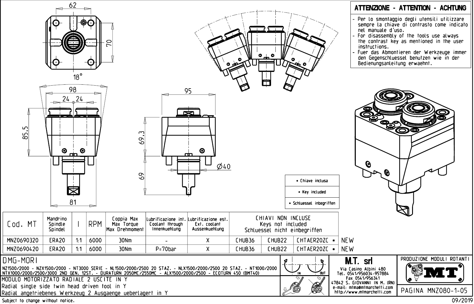 - vnitřní (max.70bar) a venkovní přívod řezné kapaliny.