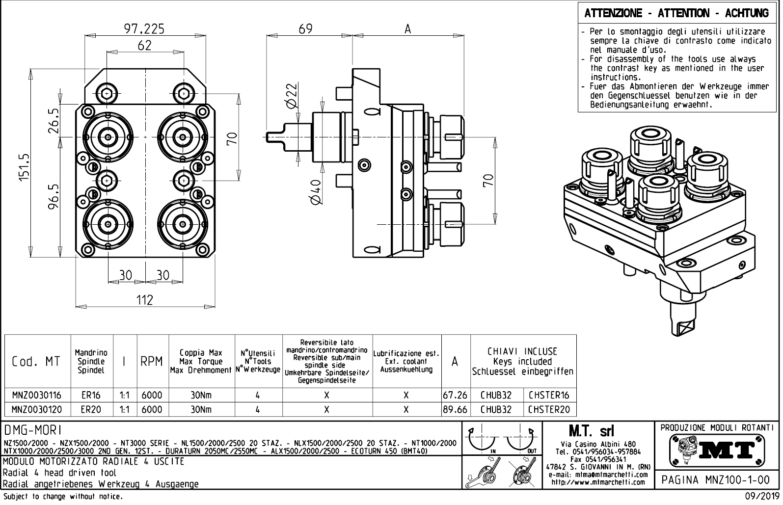 - upnutí nástroje pomocí: kleštiny ER / ERA.