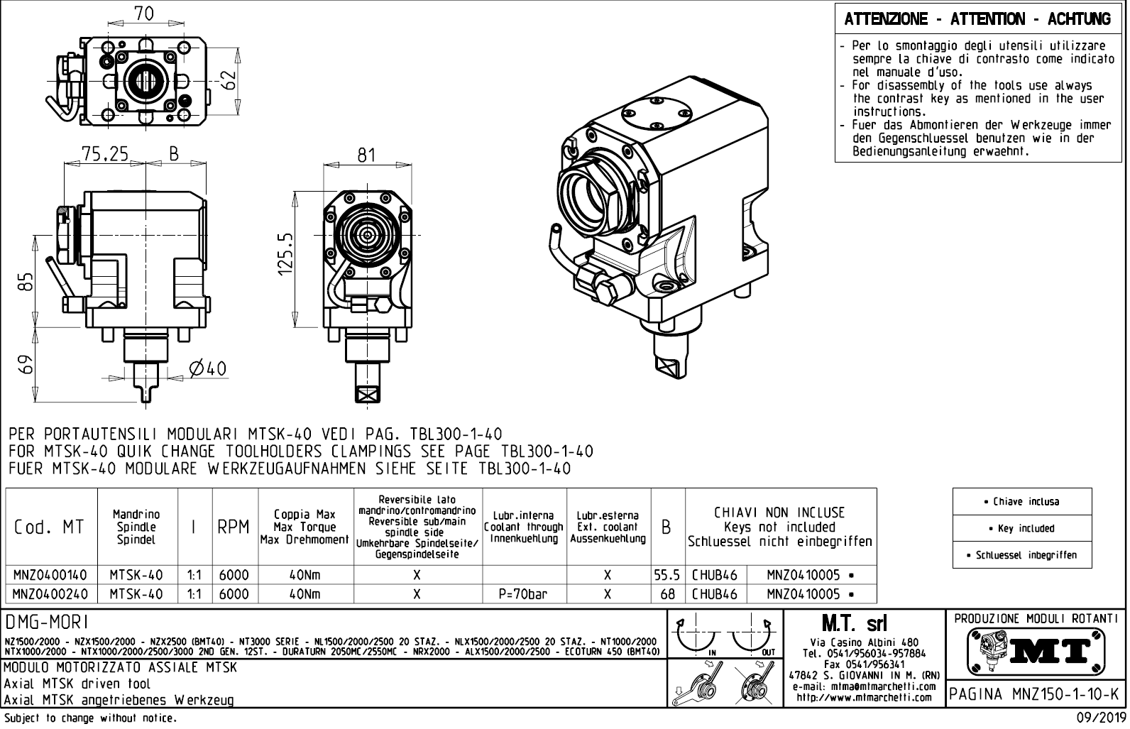 - upnutí nástroje pomocí: rychlovýměnného modulárního systému MTSK.