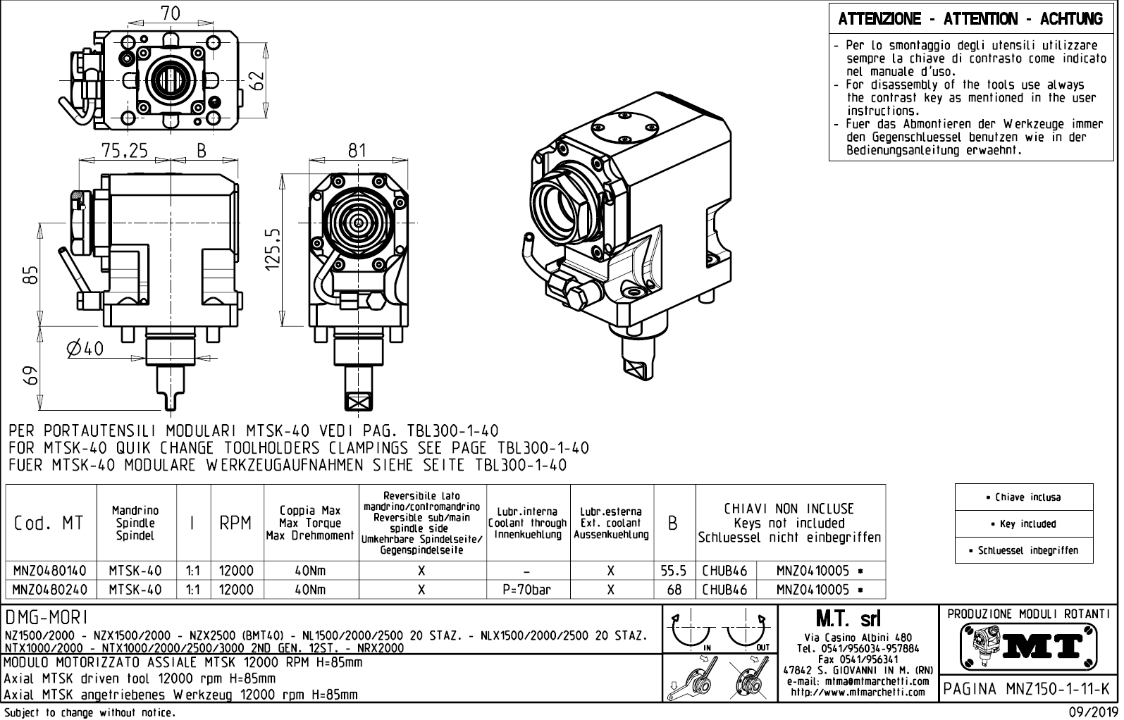 - upnutí nástroje pomocí: rychlovýměnného modulárního systému MTSK.
