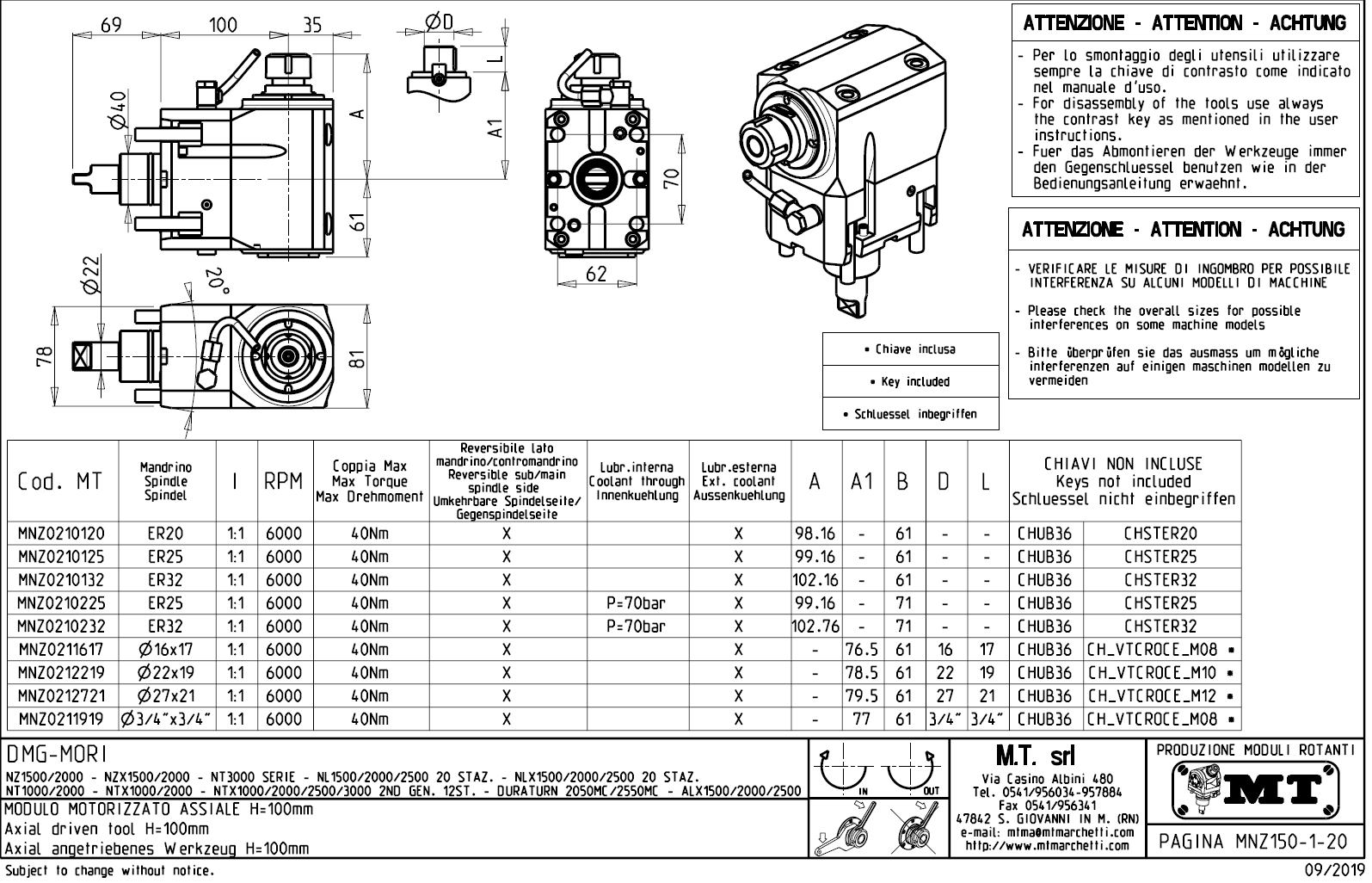 - vnitřní (max.70bar) a venkovní přívod řezné kapaliny.