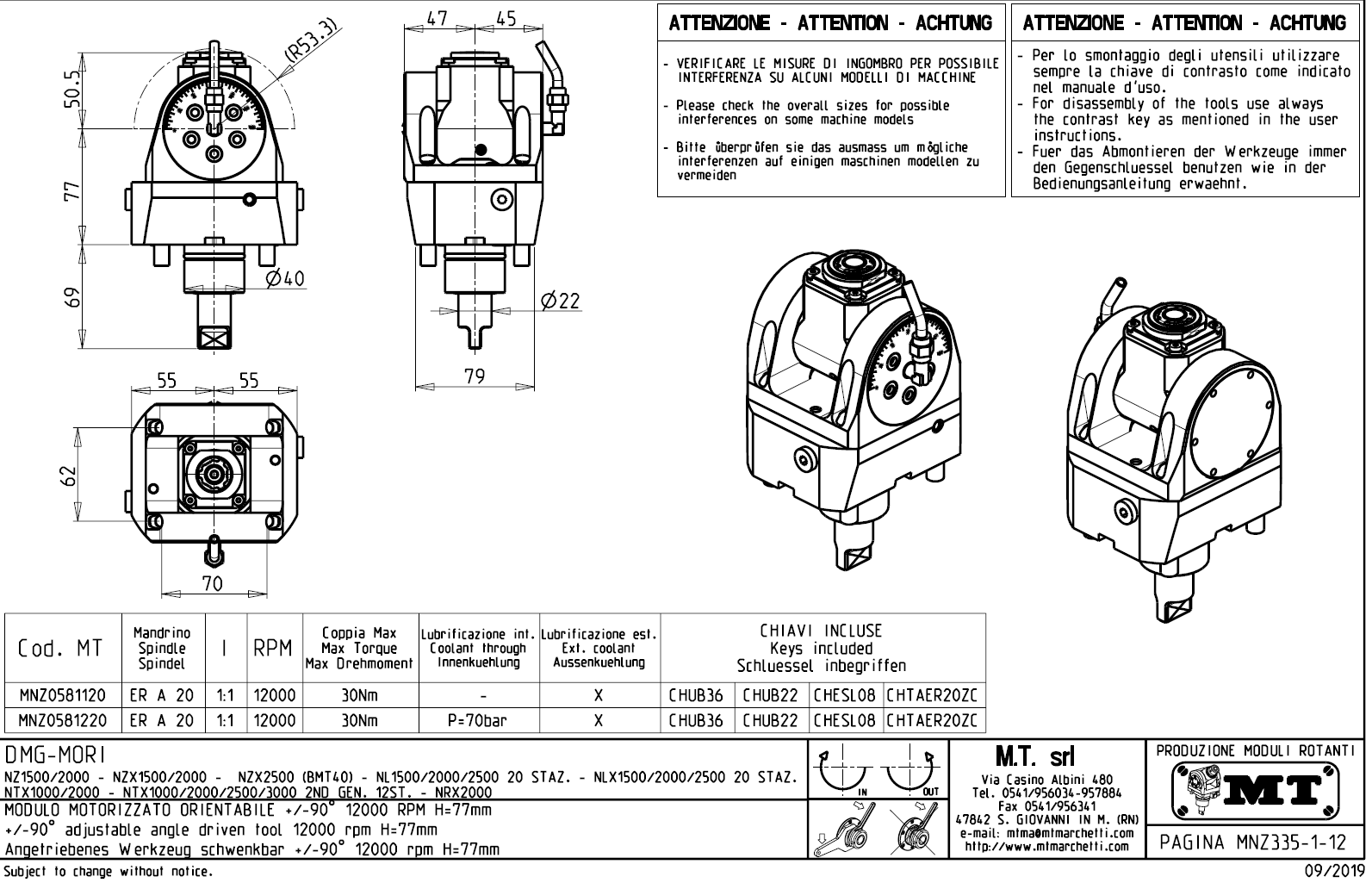 - vnitřní (max.70bar) a venkovní přívod řezné kapaliny.