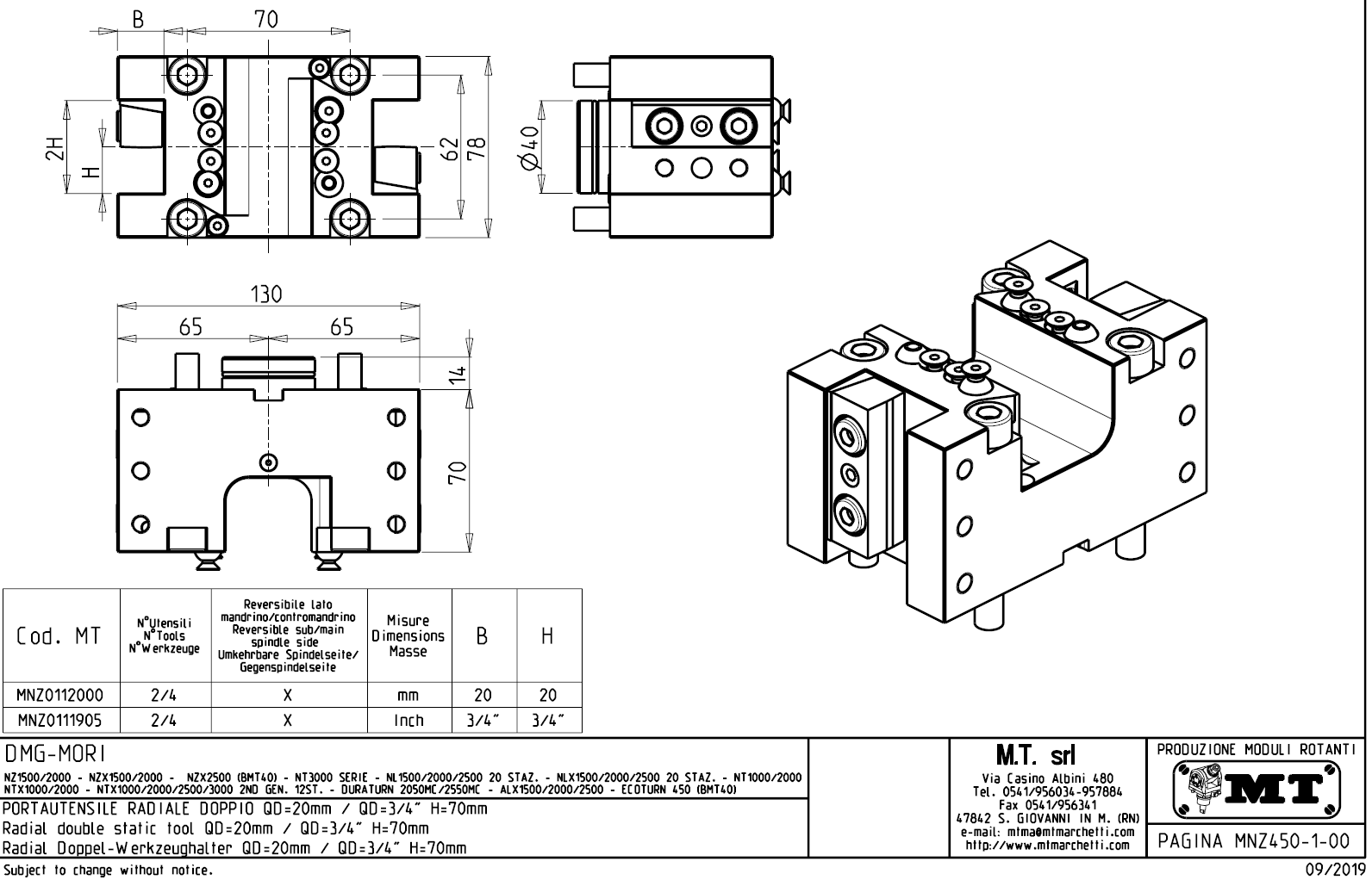 Radiální pevný, statický nástrojový držák pro stroje DMG Mori s nástrojovou hlavou BMT40