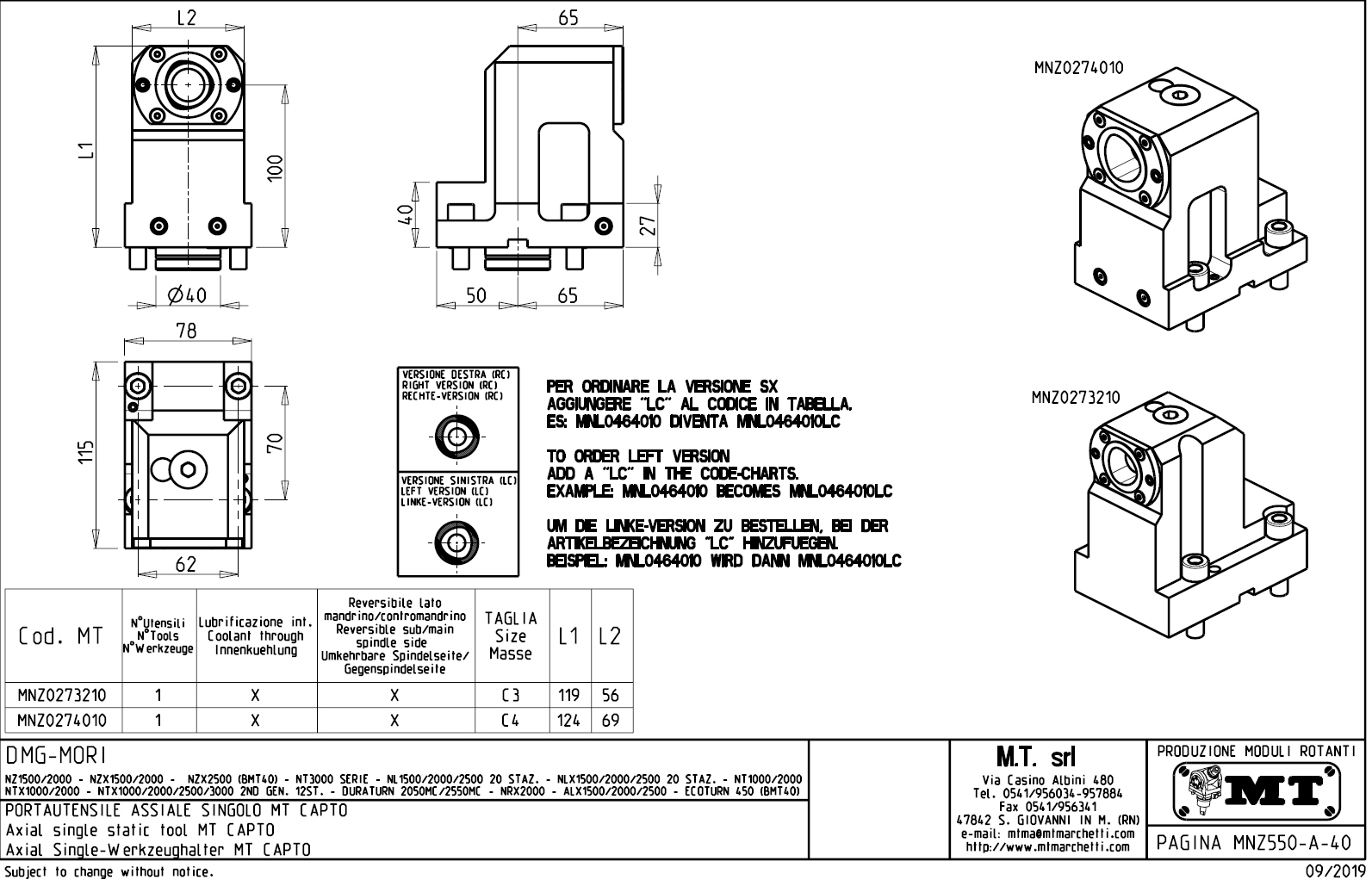 - vnitřní (max.70bar) a venkovní přívod řezné kapaliny.