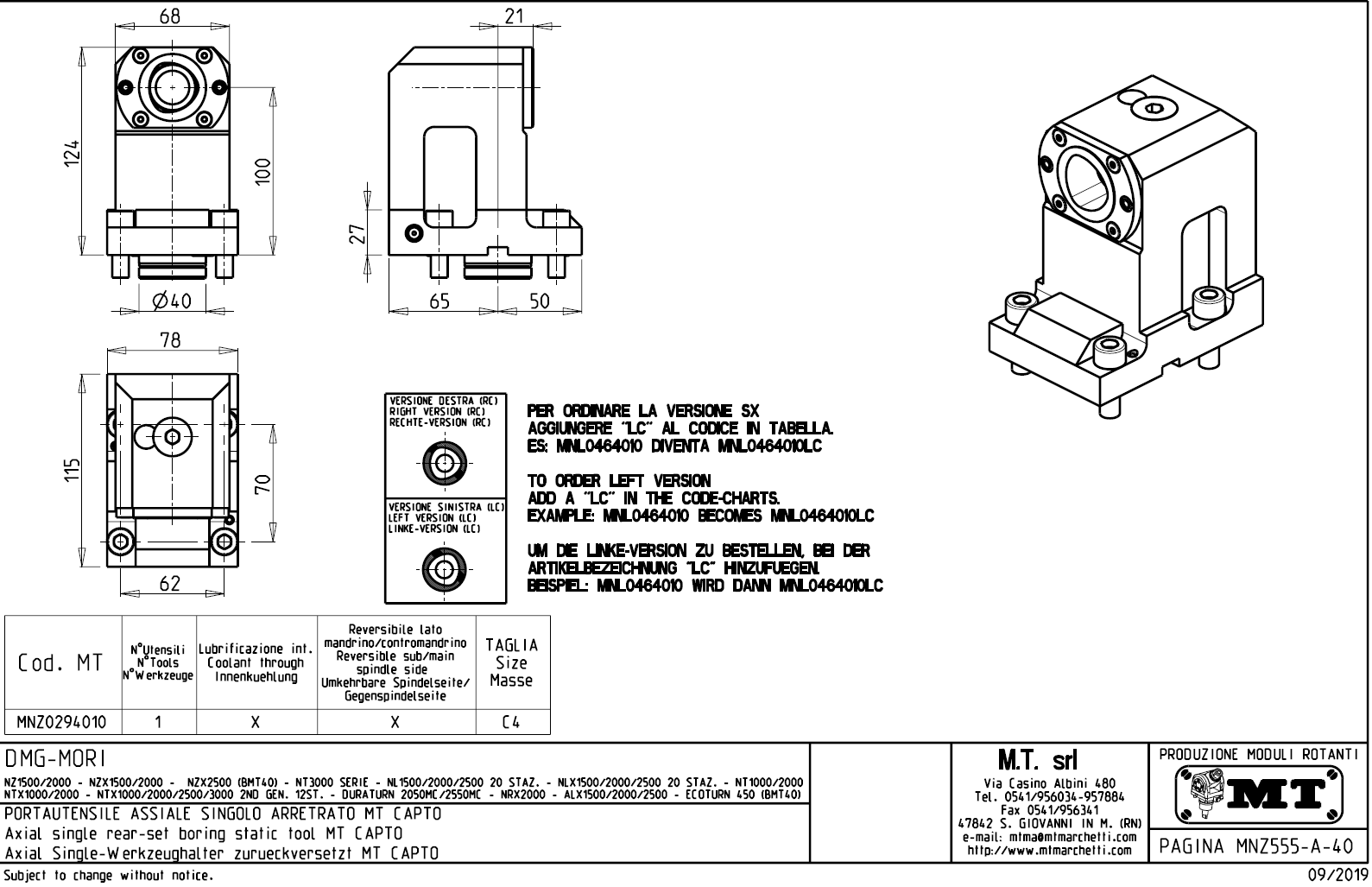 - vnitřní (max.70bar) a venkovní přívod řezné kapaliny.
