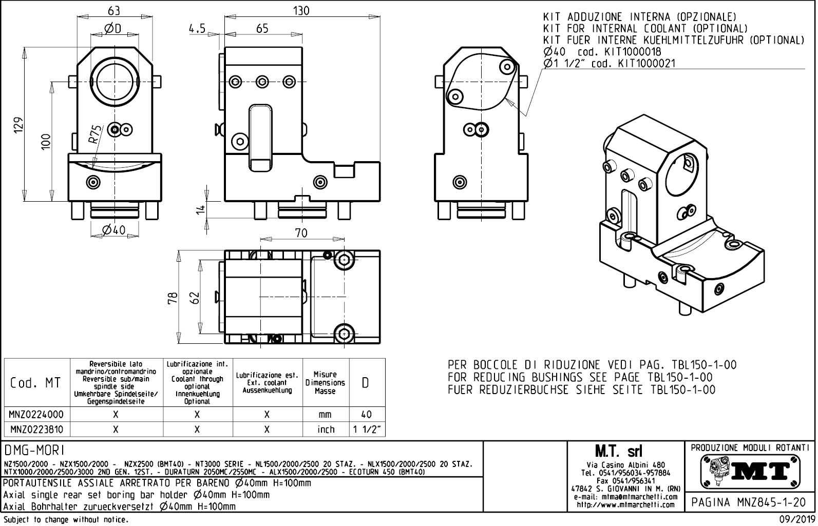- pro použití vnitřního přívodu chladící kapaliny musí být použit zaslepovací kit, který není součástí standadní dodávky.