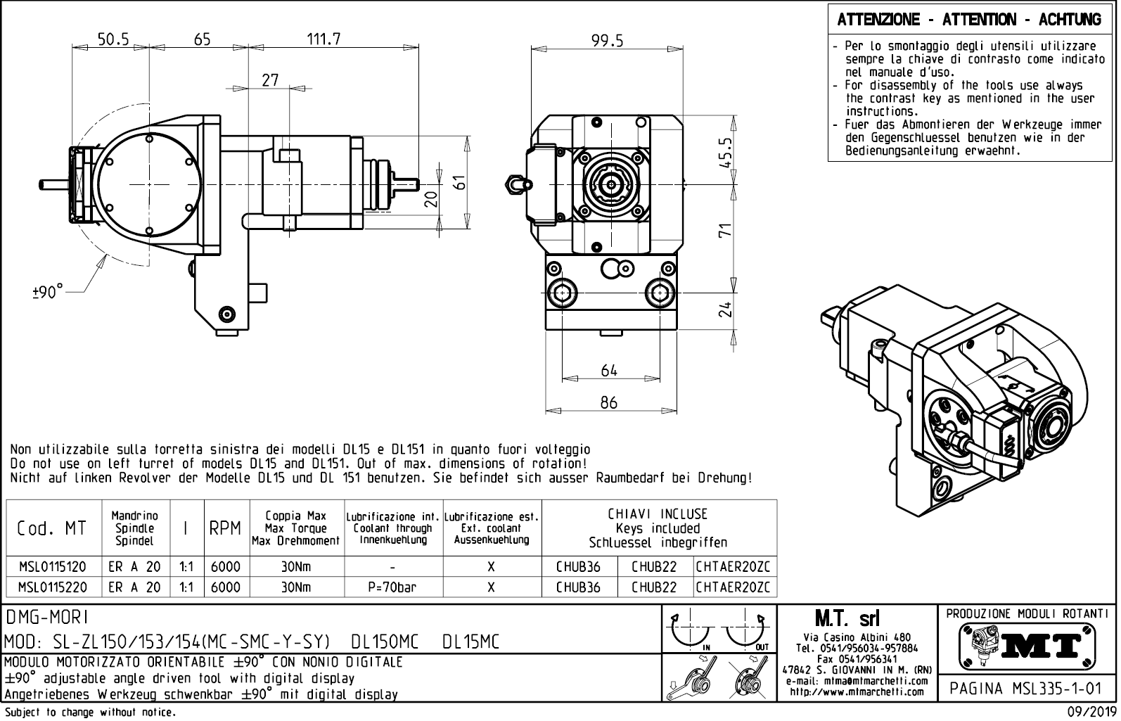 - vnitřní (max.70bar) a venkovní přívod řezné kapaliny.