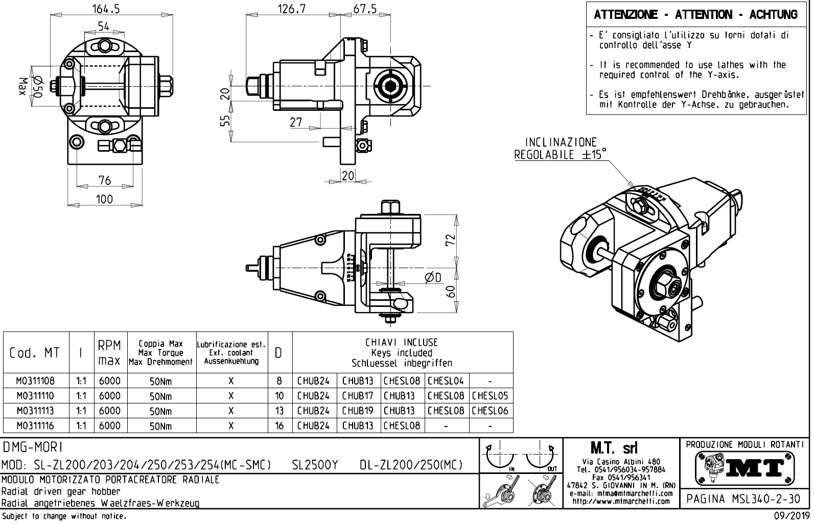 - vnitřní (max.70bar) a venkovní přívod řezné kapaliny.