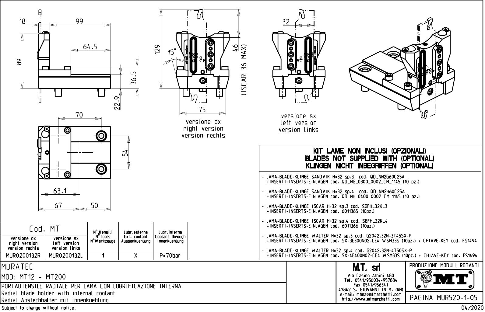 - vnitřní (max.70bar) a venkovní přívod řezné kapaliny.