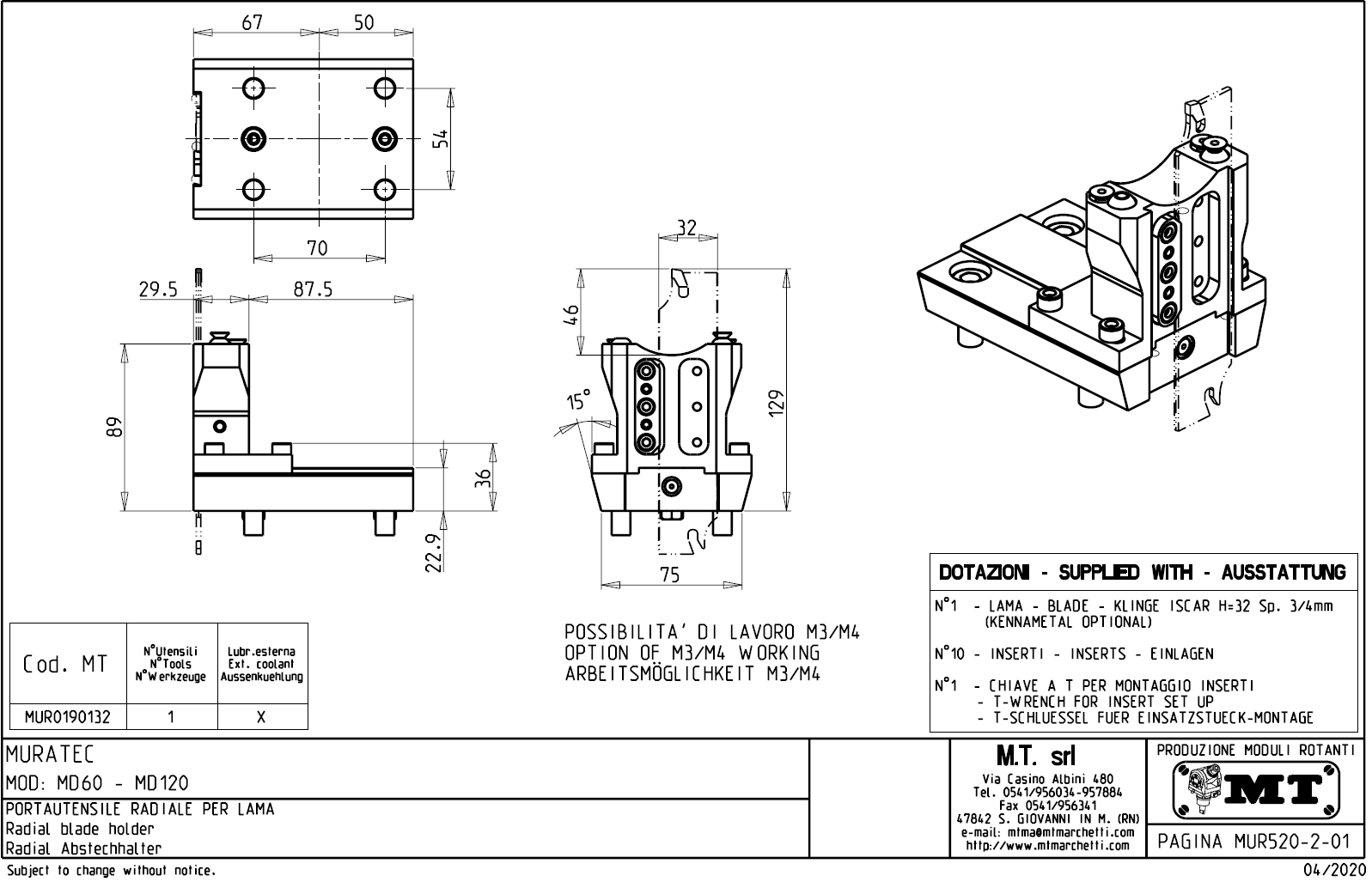 Radiální pevný držák nástrojů pro vnější soustružení: