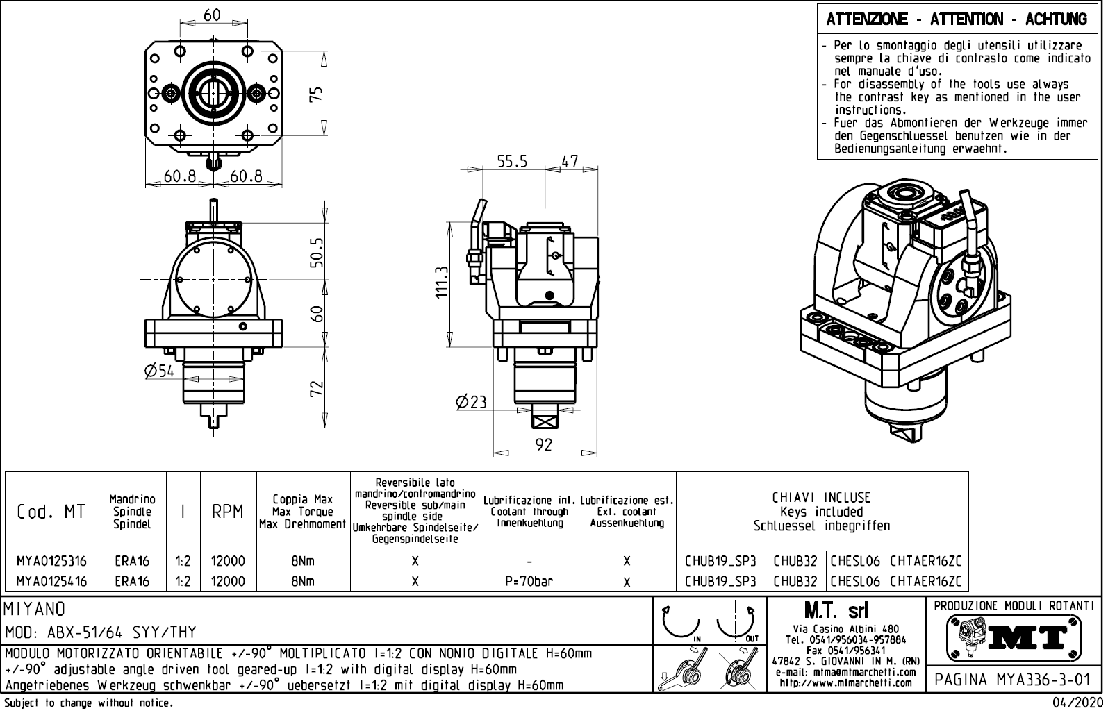 - vnitřní (max.70bar) a venkovní přívod řezné kapaliny.