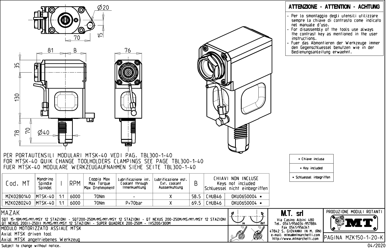- upnutí nástroje pomocí: rychlovýměnného modulárního systému MTSK.