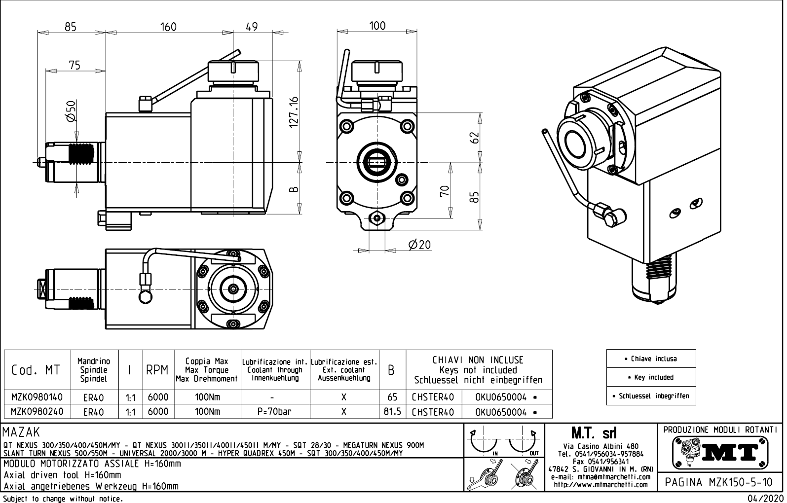 - Mazak - série QT NEXUS 300II / 350II / 400II / 450II M / MY
