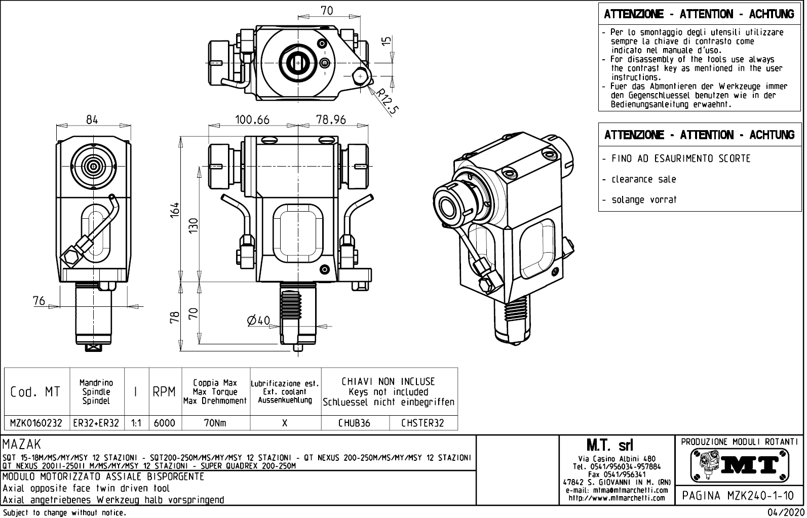 - Mazak - série SQT 200 - 250 M / MS / MY / MSY s 12-ti polohovou hlavou