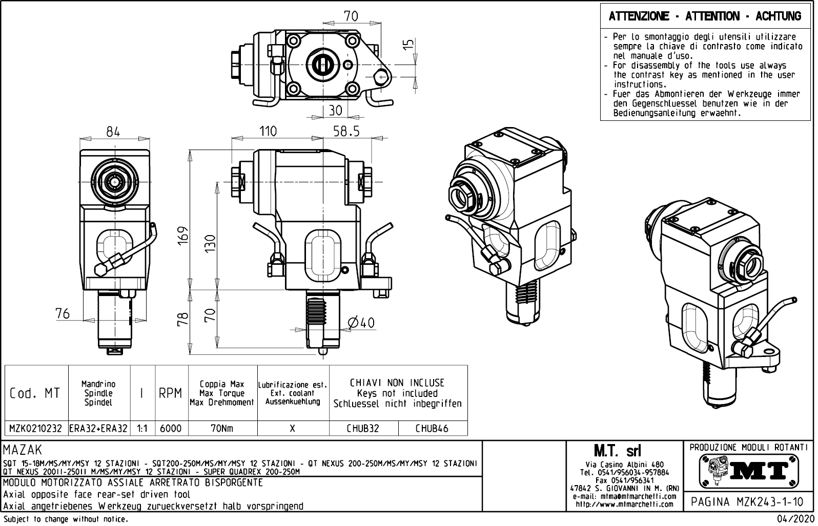 • Mazak - série SQT 200 - 250 M / MS / MY / MSY  s 12-ti polohovou hlavou