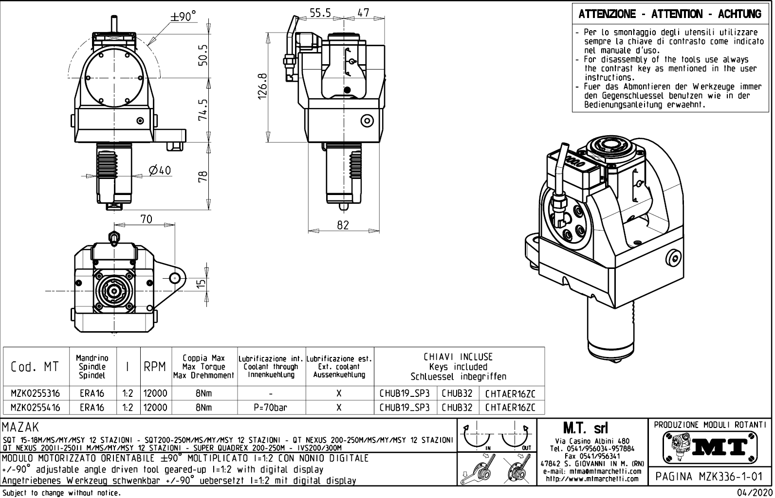 - Mazak - série SQT 200 - 250 M / MS / MY / MSY s 12-ti polohovou hlavou