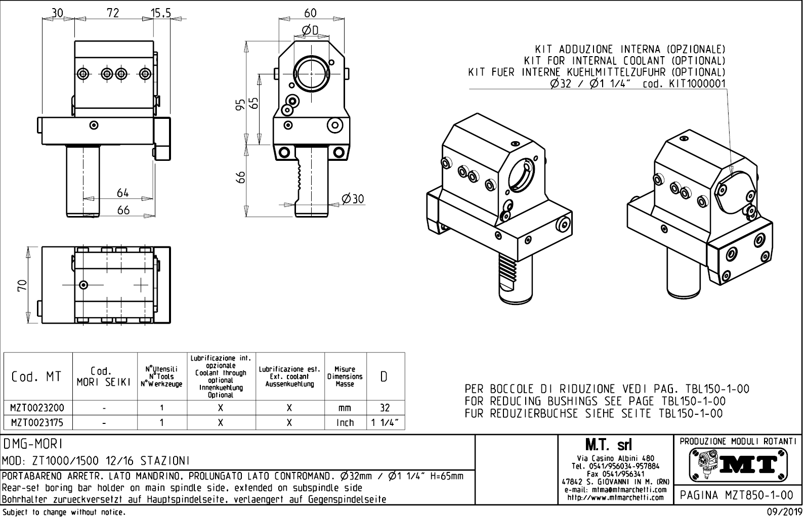 - pro použití vnitřního přívodu chladící kapaliny musí být použit zaslepovací kit, který není součástí standadní dodávky.