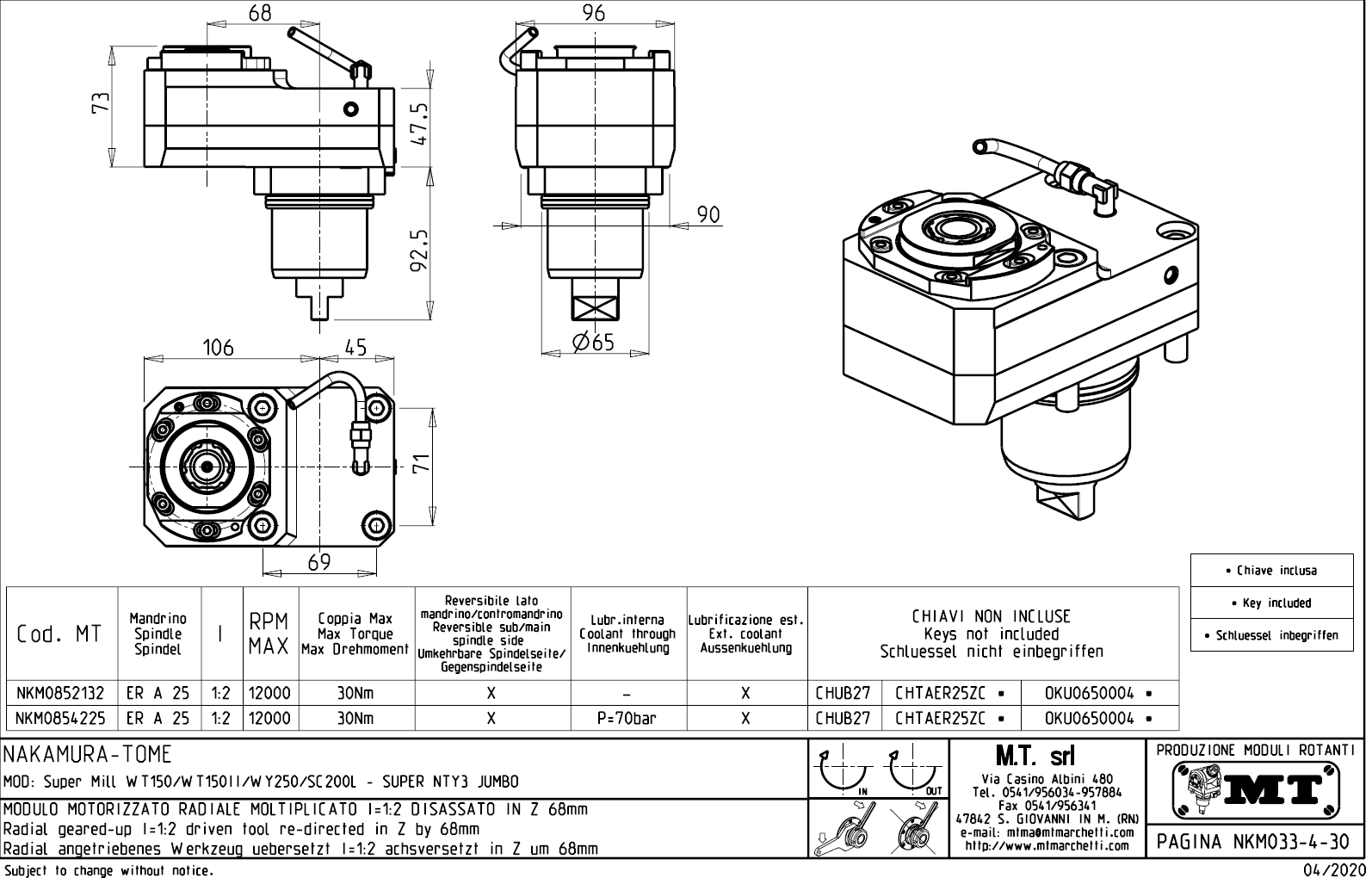 - Nakamura-Tome - série SUPER MILL WT 150 / 150 II / WY 250 / SC 200 L