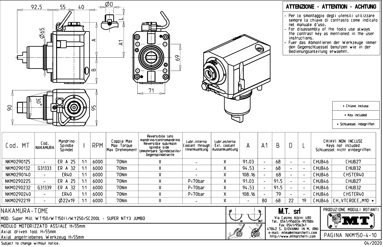 - Nakamura-Tome - série SUPER MILL WT 150 / 150 II / WY 250 / SC 200 L