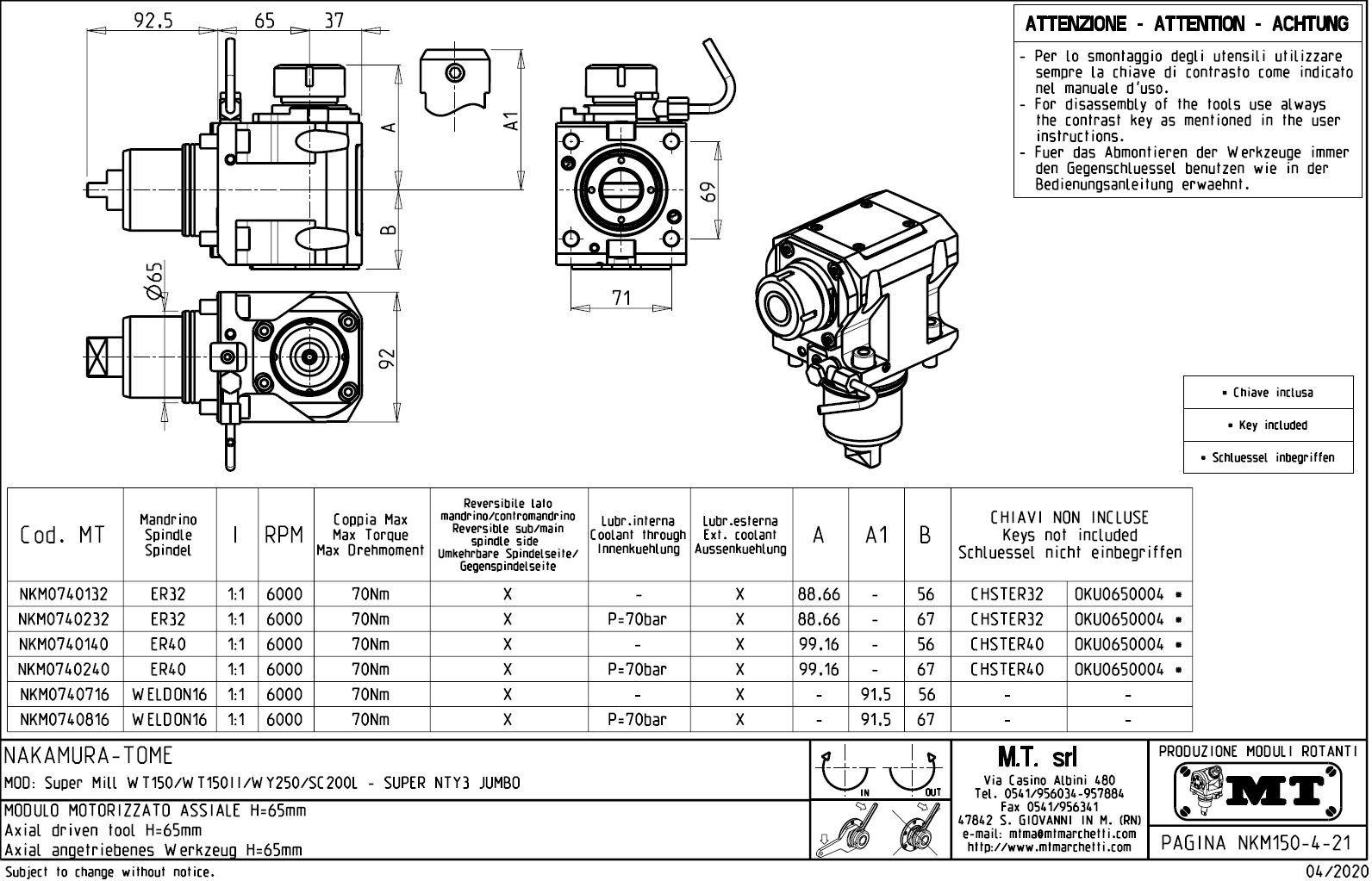 - Nakamura-Tome - série SUPER MILL WT 150 / 150 II / WY 250 / SC 200 L