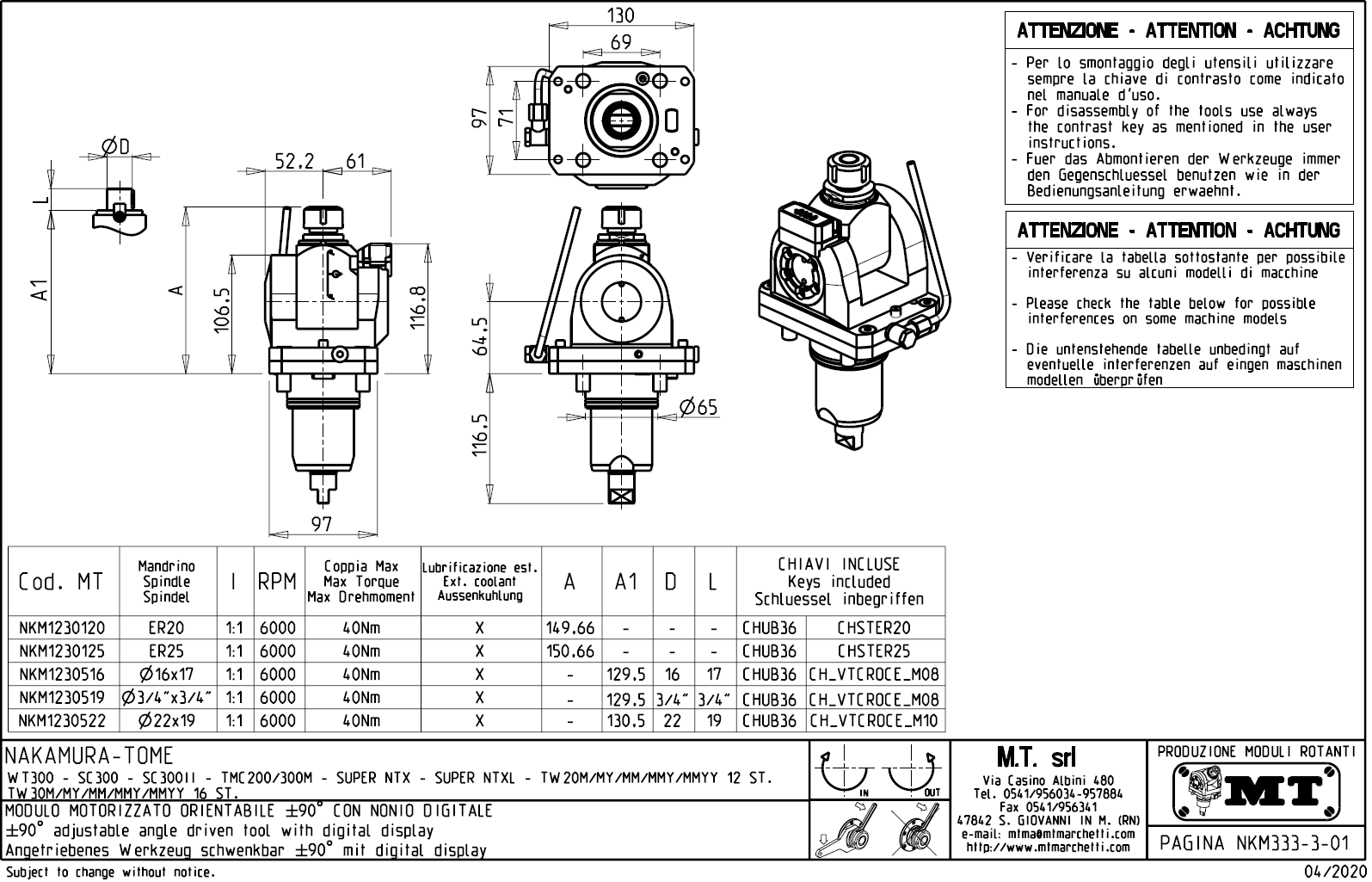 - Nakamura-Tome - série TW 30 M / MY / MM / MMY / MMYY s 16-ti polohovou hlavou