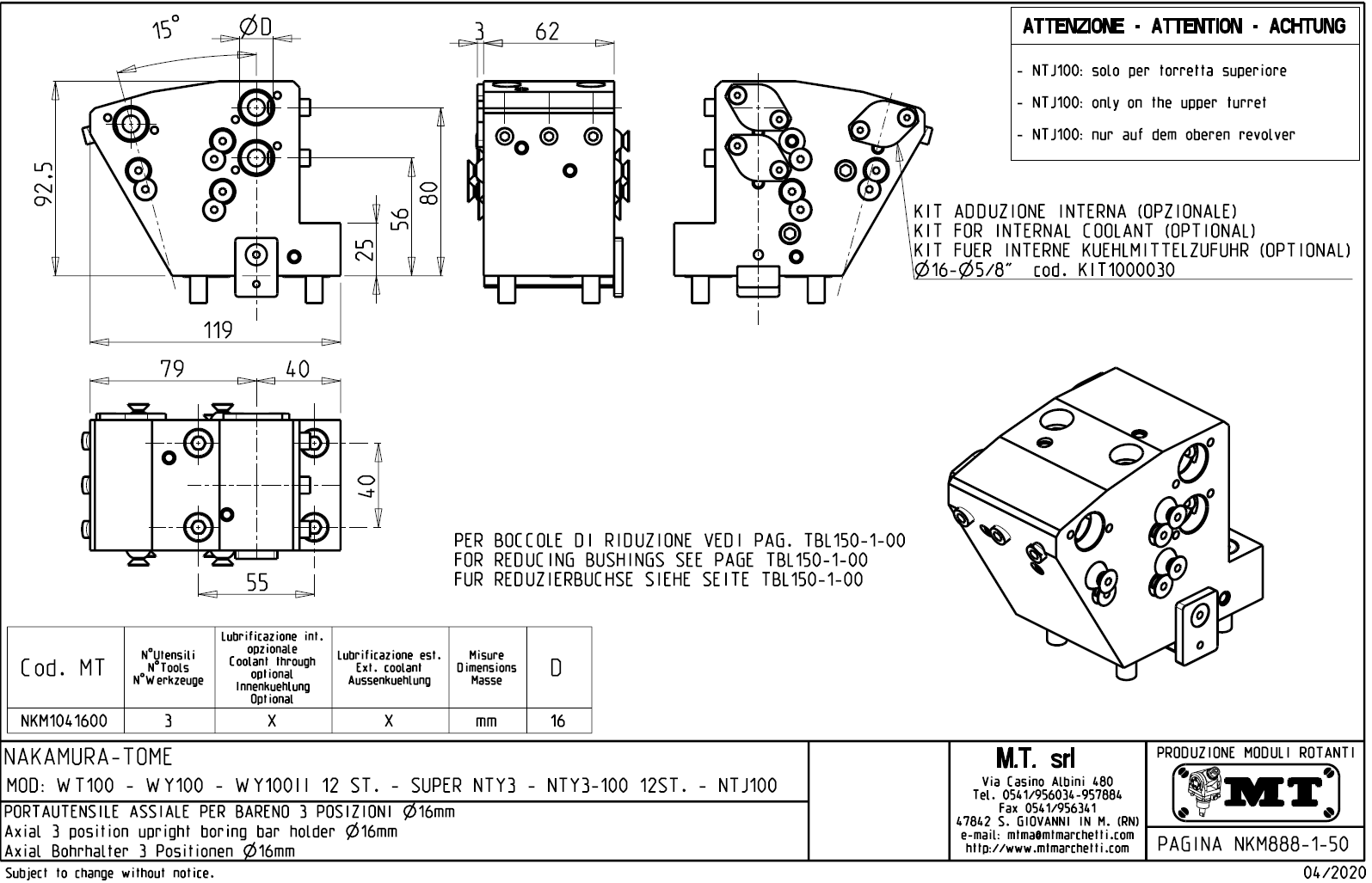 - pro použití vnitřního přívodu chladící kapaliny musí být použit zaslepovací kit, který není součástí standadní dodávky.