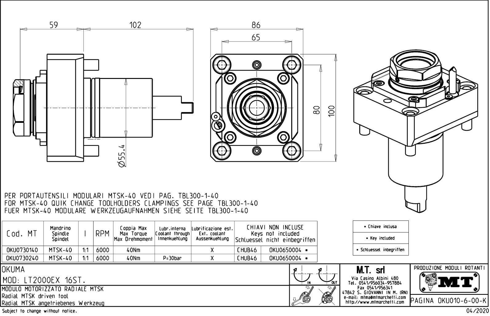 - upnutí nástroje pomocí: rychlovýměnného modulárního systému MTSK.