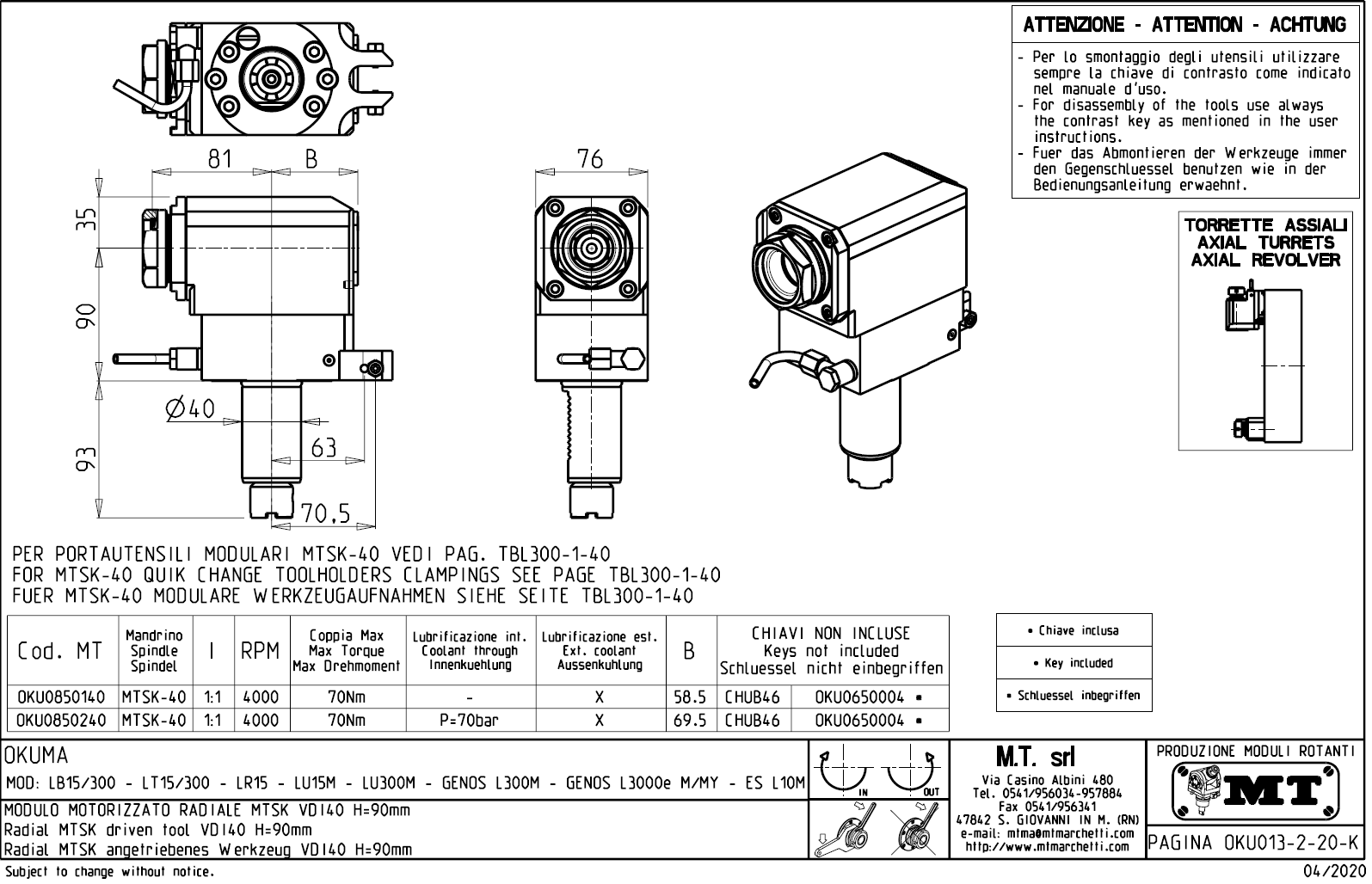 - upnutí nástroje pomocí: rychlovýměnného modulárního systému MTSK.