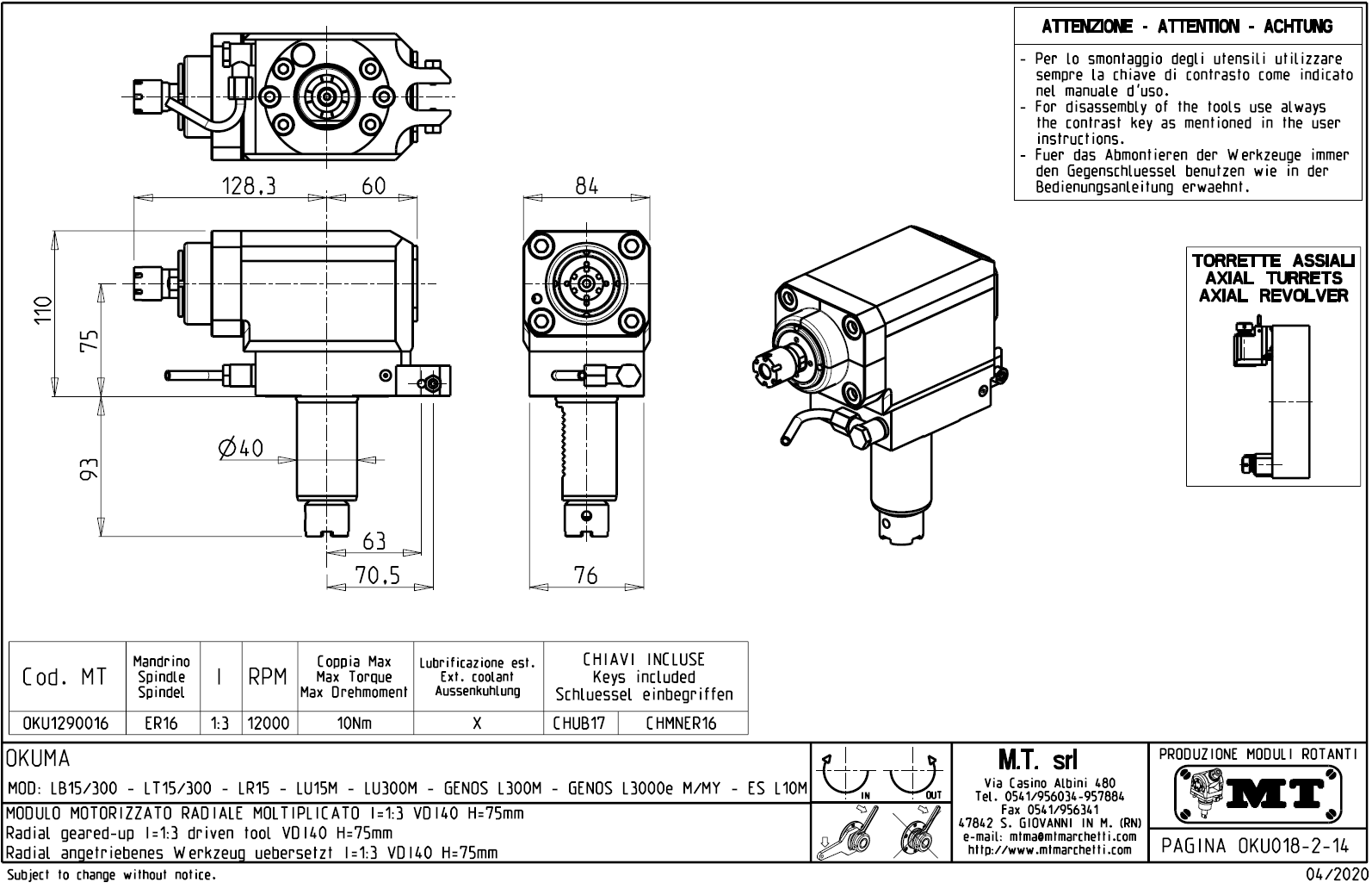 Radiální rotační držák nástrojů pro stroje s nástrojovou hlavou VDI40.
