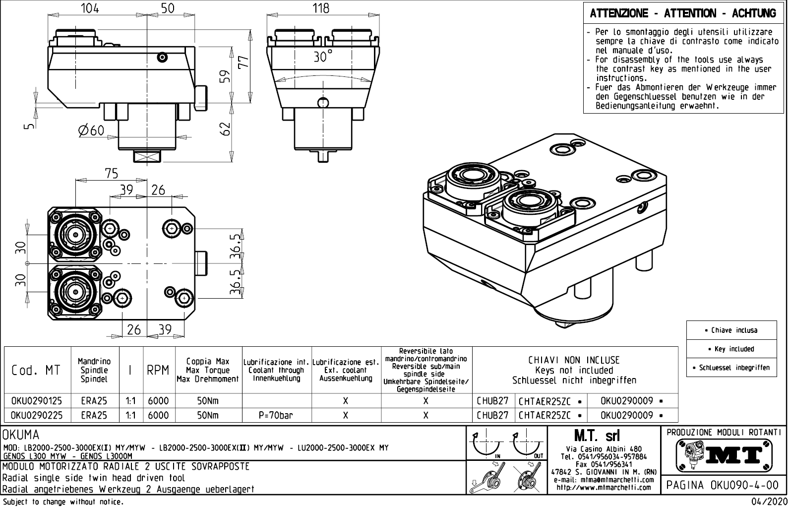 - Okuma - série LB 2000 / 2500 / 3000 EX (II) M / MY / MW / MYW